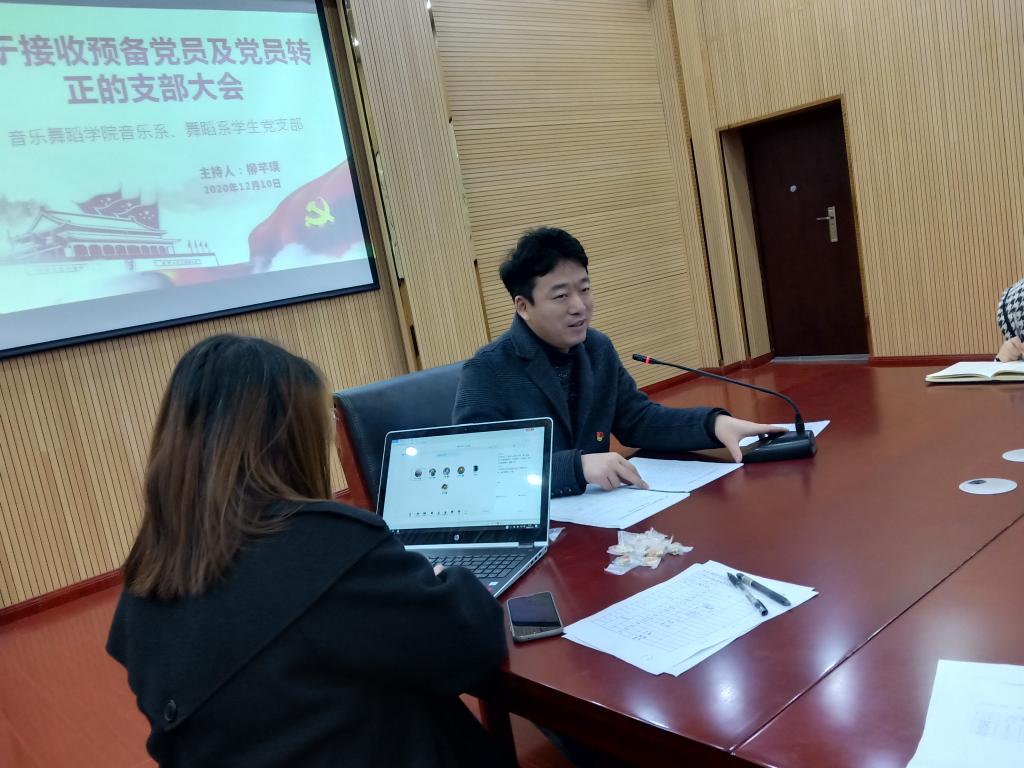 2026年世界杯官网音乐系员工党支部于12月10日上午在六楼音乐厅开展关于讨论决定2020年下半年白煜等4名同志的转正事宜。出席本次会议的有党委副书记朱晨刚、音乐系员工党支部书记舒然、组织委员郭媺和全体员工党员,会议柳芊璞主持。