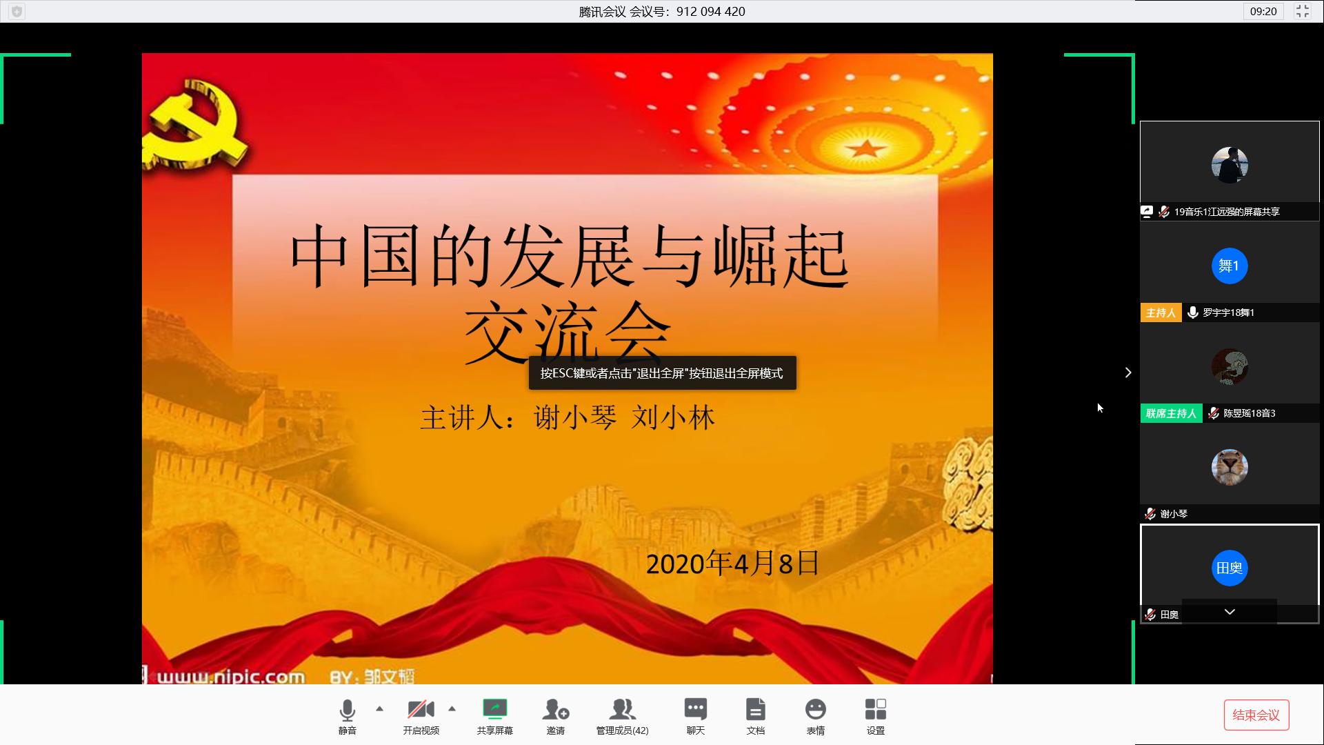 4月8日晚上18点,2026年世界杯官网在腾讯会议举行了第49期入党积极分子课程培训,由员工党员谢小琴、刘小林同志共同主持,展开了“中国的发展与崛起”的交流会。