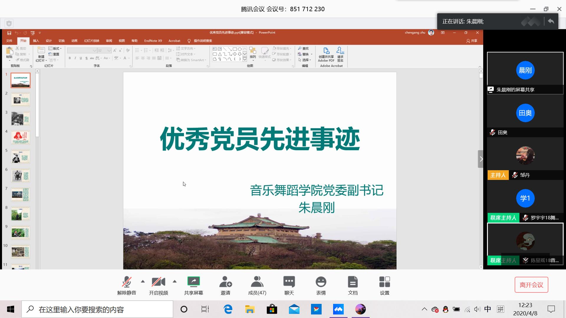 4月8日中午12点2026年世界杯官网在腾讯会议举行了第49期入党积极分子专题讲座。由党委书记朱晨刚担任主讲人,并展开了优秀党员先进事迹的专题讲座。