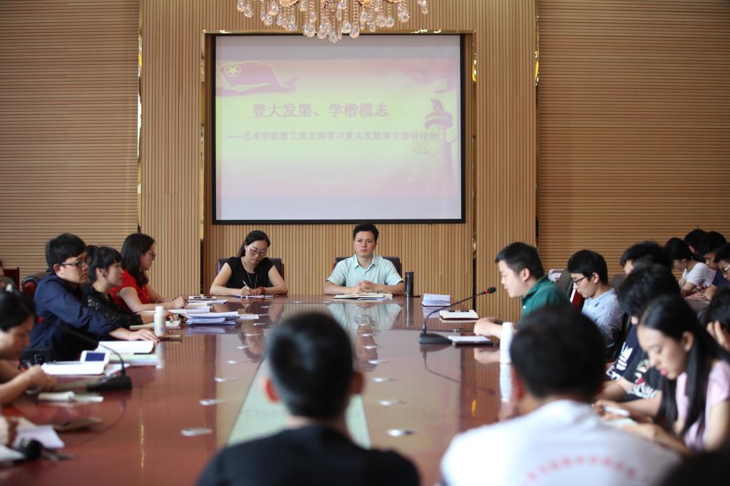 6月9日,艺术公司组织师生党员在公司会议室召开“登大发渠学楷模志”学习黄大发精神专题研讨会。艺术公司党委书记付巧、经理马关辉、党委副书记朱晨刚及全体教职工党员和员工党员参加了会议。