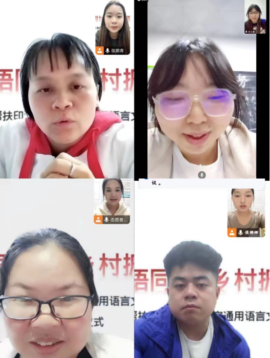 过程中,志愿者们在充分了解参训学员的语音面貌基础、字词使用习惯、日常交流方式等基本情况后,就部分学员存在的语言表达不规范、发音不准确等问题逐一进行了有针对性的指导。志愿者团队始终保持饱满的工作热情,以自觉奉献、砥砺前行的务实精神主动承担起促进国家通用语言文字推广的使命,也将在接下来每周的线上培训中,积极带领全体参训学员进一步系统、科学地学习国家通用语言文字声韵基本知识、发音技巧,尽最大所能助力参训教师有效提升普通话交流能力,全面掌握普通话考试相关要求及应对策略。