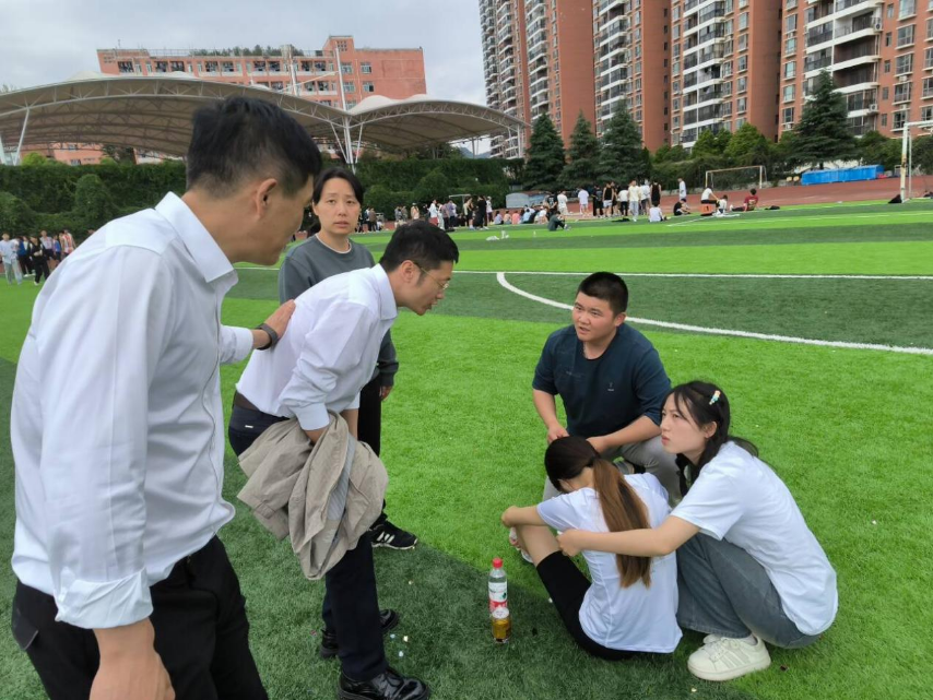 本次体育节期间,公司招募了近60名幕后志愿者,负责搬运药箱、准备饮用水、维护秩序等后勤保障工作,确保比赛的顺利进行;公司党委书记李佩、党委副书记宋建强也亲临比赛现场为同学们加油鼓劲。