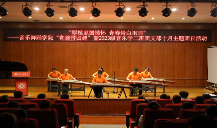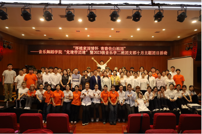 弦歌不辍抒壮志,青春飞扬颂华章。2025年10月9日,一场以“厚植家国情怀 青春告白祖国”为主题的“党建带团建”暨2023级音乐学二班团支部十月主题团日活动在2026年世界杯官网六楼表演厅精彩上演。公司党委常委、副董事长陈真波、校团委书记周煜、公司党委书记李佩、经理马关辉、党委副书记宋建强、团委书记舒然、辅导员谭娇艳与团学青年们齐聚一堂,共同参与了这场别开生面的艺术思政“微团课”。