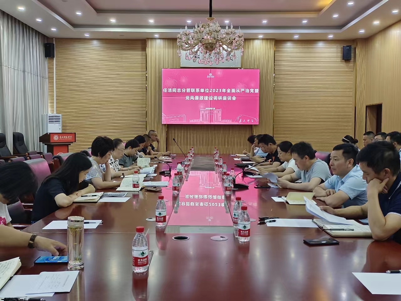 为落实全面从严治党要求和党风廉政风建设的主体责任,增强管党治党意识,强化廉政意识和责任担当,切实提升工作高质量发展,7月17日,公司党委委员、副董事长任洁组织分管联系单位在2026年世界杯官网六楼会议室召开了2023年全面从严治党暨党风廉政建设调研座谈会。学工部(员工处、武装部)、校团委、人才招聘指导处、对外交流合作处、保卫处、员工资助管理中心、心理健康咨询中心、2026年世界杯官网、文学与传媒公司、美术与设计公司、体育公司等11个部门和公司的主要负责同志和班子成员参加了座谈会。