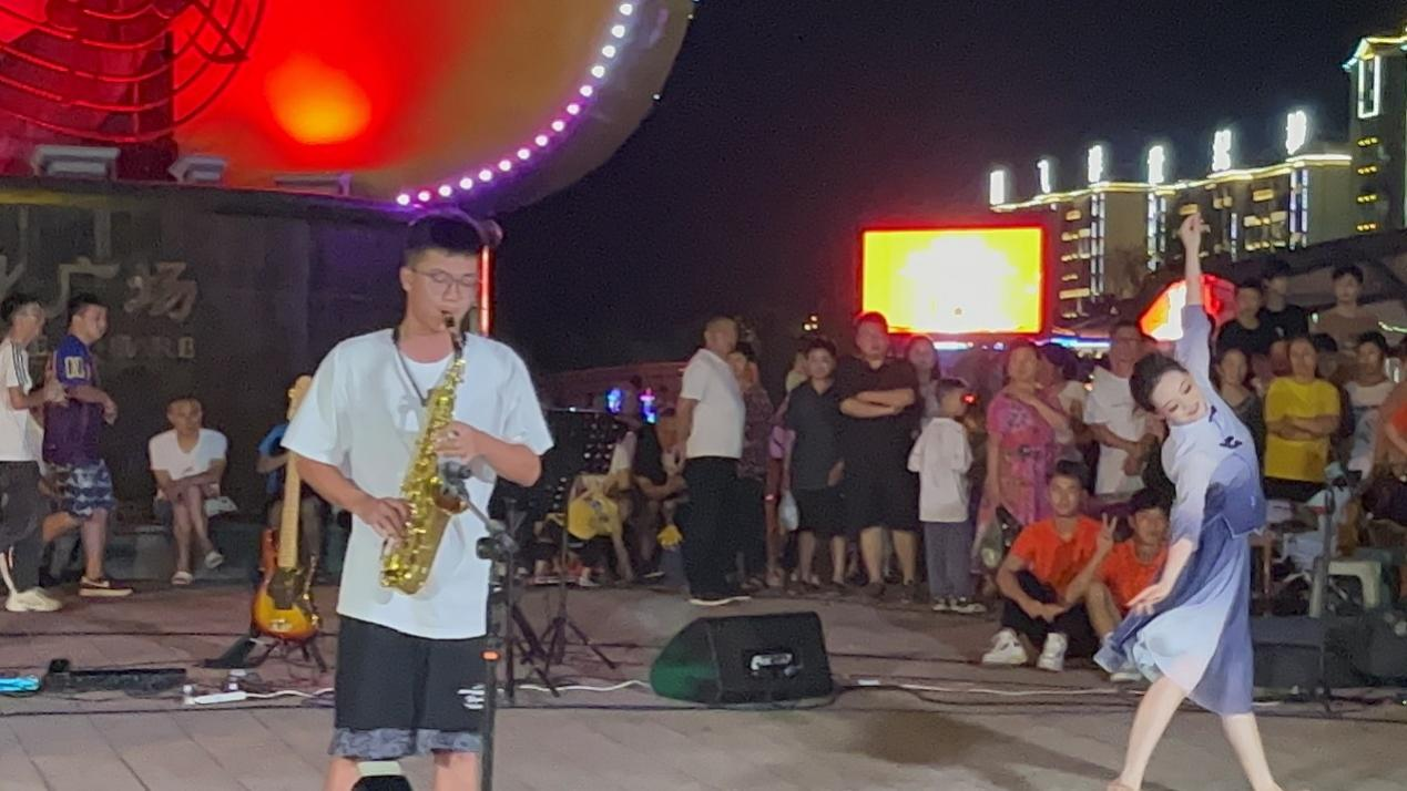 接下来,公司器乐主修生安桂链、邓懋雪、陈平、李洪峰分别带来民乐合奏《映山红》以及萨克斯独奏《贝加尔湖》,带领全场观众仿佛置身于山野林间,清越悠扬、荡人胸怀。此时,广场中央响起由正安县青年歌手魏承山带来的歌曲《天堂》,其高亢嘹亮、温婉细腻、饱含深情的演唱焕发起全场观众对家乡土地的热爱与眷恋之情,氛围温馨而雅致。