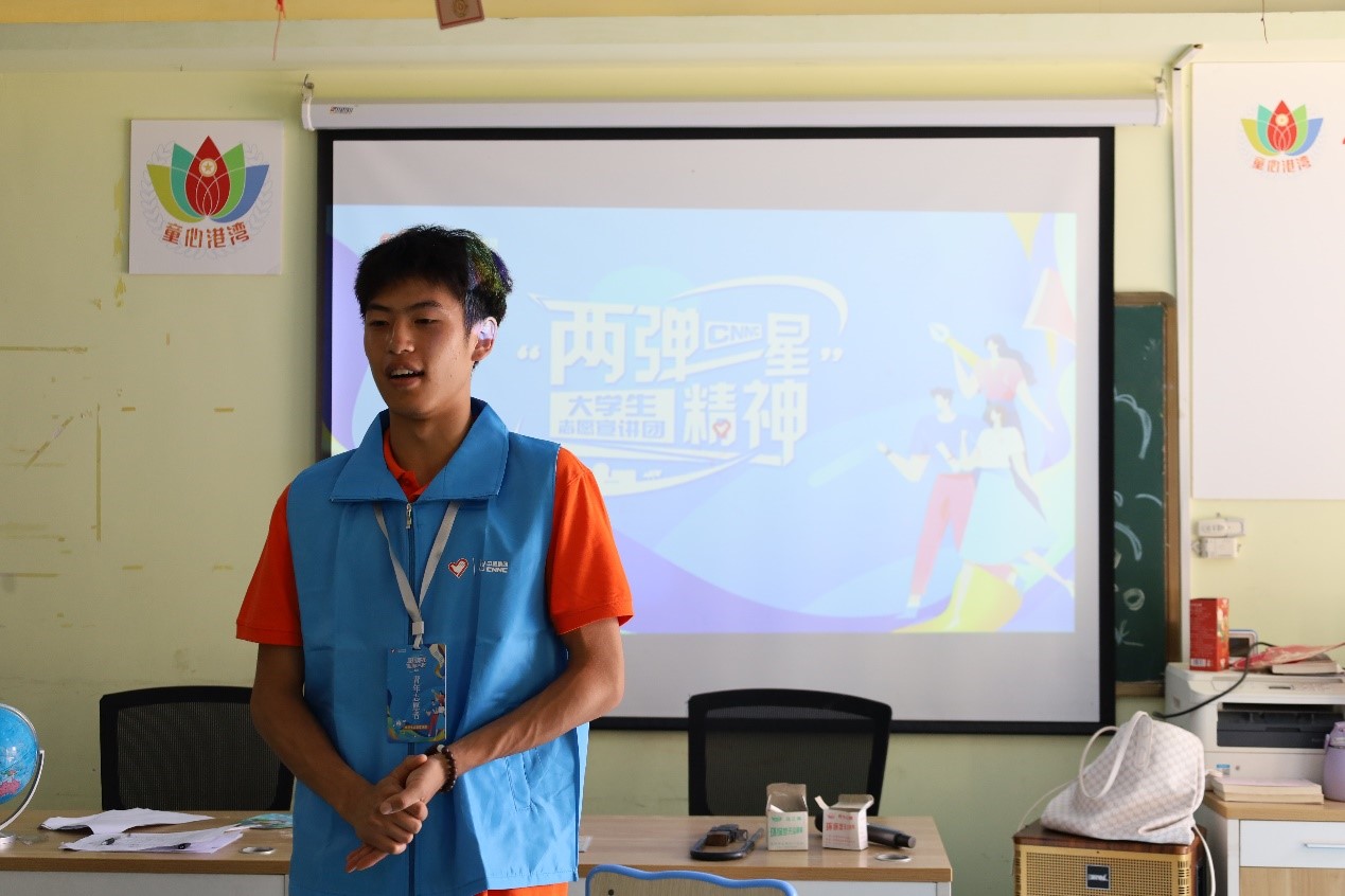 志愿者任宇乐在“希望小课堂”开展“两弹一星”精神宣讲