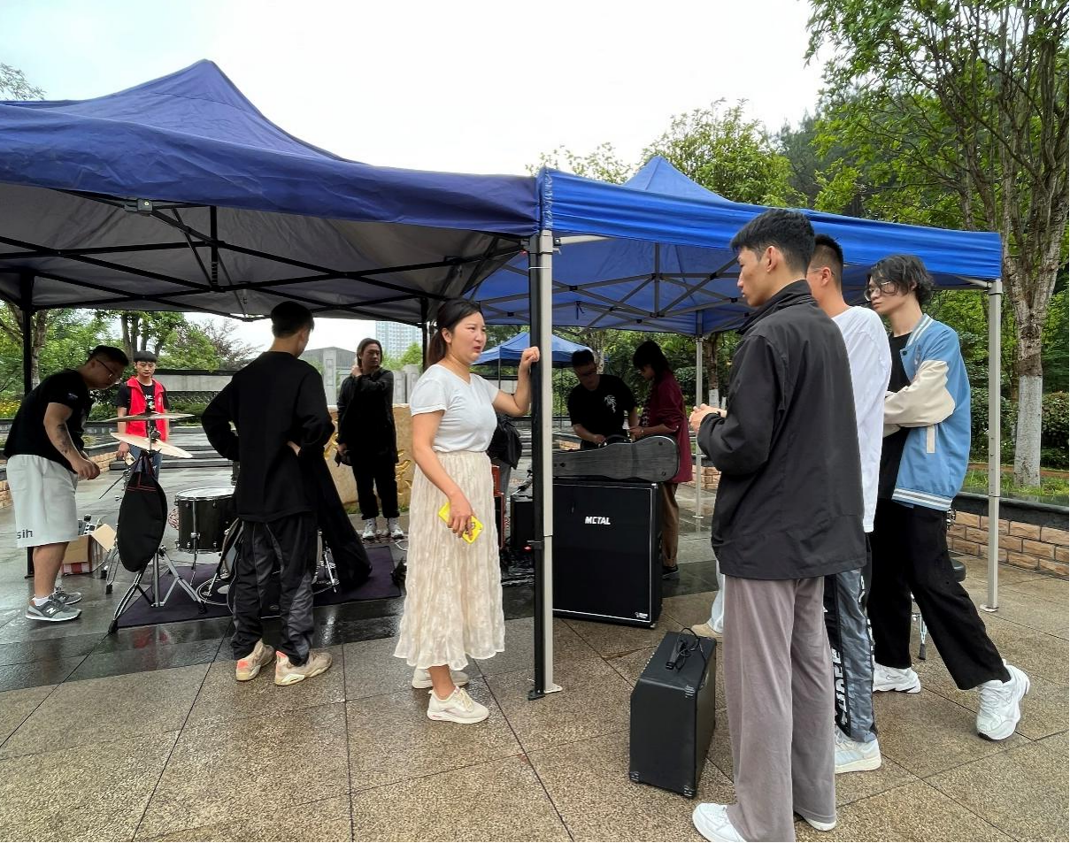 “美丽师院˙校歌嘹亮”校歌演唱唤起了毕业生对母校真挚的情感,在这片深情的土地上,记录着同学们四年成长的足迹,每一次欢笑与泪水。“印山清风˙文化传承”古筝演奏似细雨打芭蕉,远听无声,静听犹在耳畔,余音切切,回味绵长,寄语毕业生汲取奋进力量,砺自身之节行,立时代之潮头,绽青春之光彩。“乐青春˙悦未来”乐队表演用热情洋溢的唱腔,诠释着对自我、对梦想、对青春的理解和态度。全部活动均采用音乐的形式回忆往昔,激励学子,营造了温暖而感人的毕业氛围。