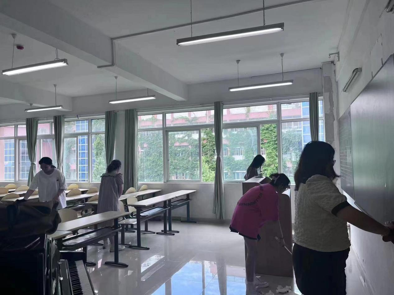 此次劳动实践活动,各班分工明确,各专业同学们参与积极性高,劳动成果明显。按照公司劳动实践活动安排,同学们高效清理了卫生责任教室、琴房、舞蹈实训室、舞台表演实训室、电钢实训室、奥尔夫教学实训室等所有教学与实践场所,整理了乐器保管室、舞蹈服装和道具储存室,也对公司办公区、楼梯、过道等公共区域进行了全面打扫。“公司是我家、卫生靠大家”,在大扫除过程中,同学们充分发扬不怕苦、不怕累、不怕脏的精神,不放过任何一个卫生死角,每一位同学都参与其中,同时也乐在其中。