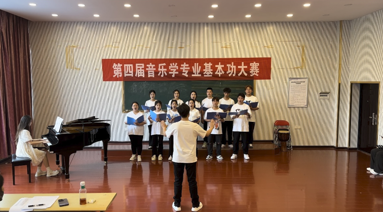 本届大赛继续参照教育部主办的“全国普通高等公司音乐教育专业本科员工基本功展示”赛制,设置了歌唱与钢琴伴奏、自弹自唱、合唱指挥、中外乐器演奏、舞蹈五个比赛项目,参赛选手按三人一组在本年级内进行自愿组合,其中歌唱与钢琴伴奏、自弹自唱为每人必赛项目,其它三个比赛项目由小组中三人根据各自特长有选择性地进行分工完成。2023、2021级音乐学专业员工全员参加了比赛,2022级音乐学专业员工以参加小组合唱的形式参与比赛。音乐学专业教师全员参与了此次基本功比赛的评委工作。