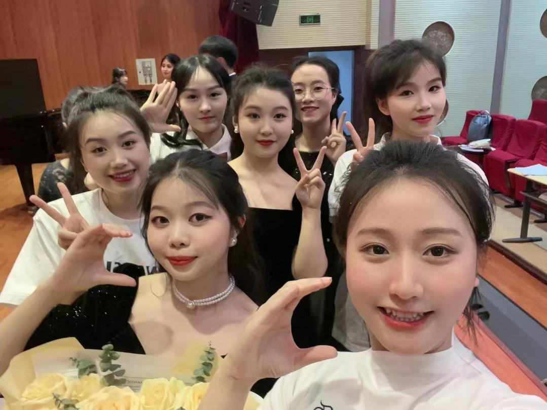晚上18时,合唱指挥考核在六楼音乐厅举行,5名主修生、8名辅修生逐一上台,指挥“聆音”合唱团成员演唱了《共青团员之歌》《春游》《萱草花》《四季的问候》等脍炙人口、富含深意的作品,赢得现场观众阵阵掌声。