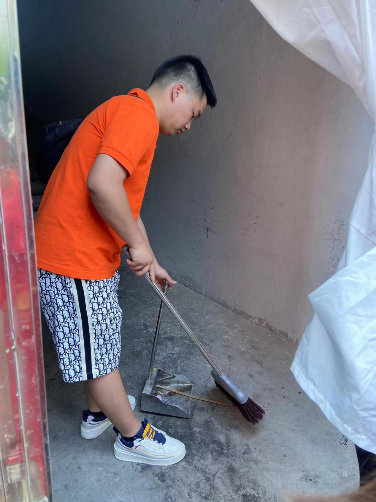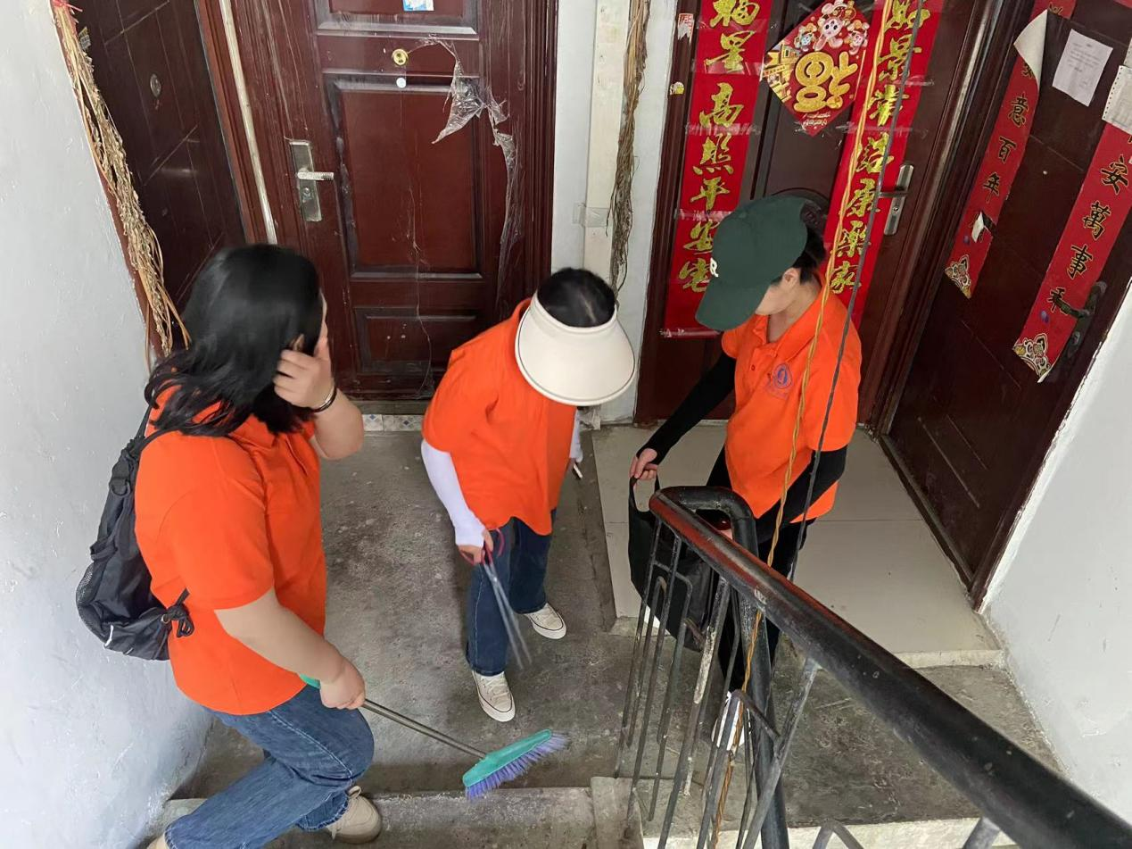 志愿者们清理楼道