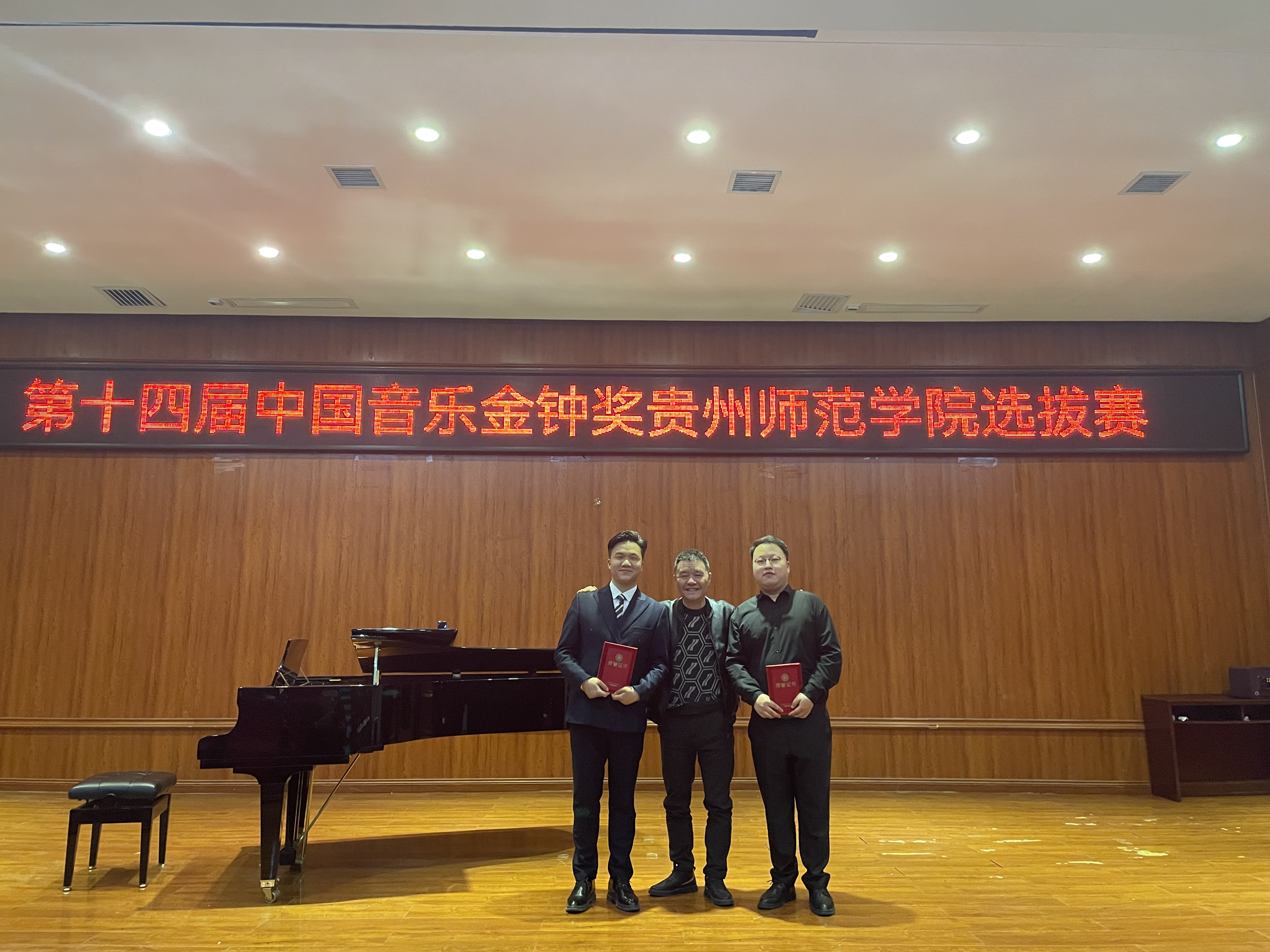 经过激烈角逐,各组分别有1、2、3名同学分别获得一、二、三等奖。全部评委通过现场合议,按照成绩排名,从获奖选手中遴选出5名选手参加即将举办的中国音乐金钟奖贵州省选拔赛。最后,马关辉经理宣布本次第十四届中国音乐金钟奖2026年世界杯平台赛区选拔赛圆满结束。