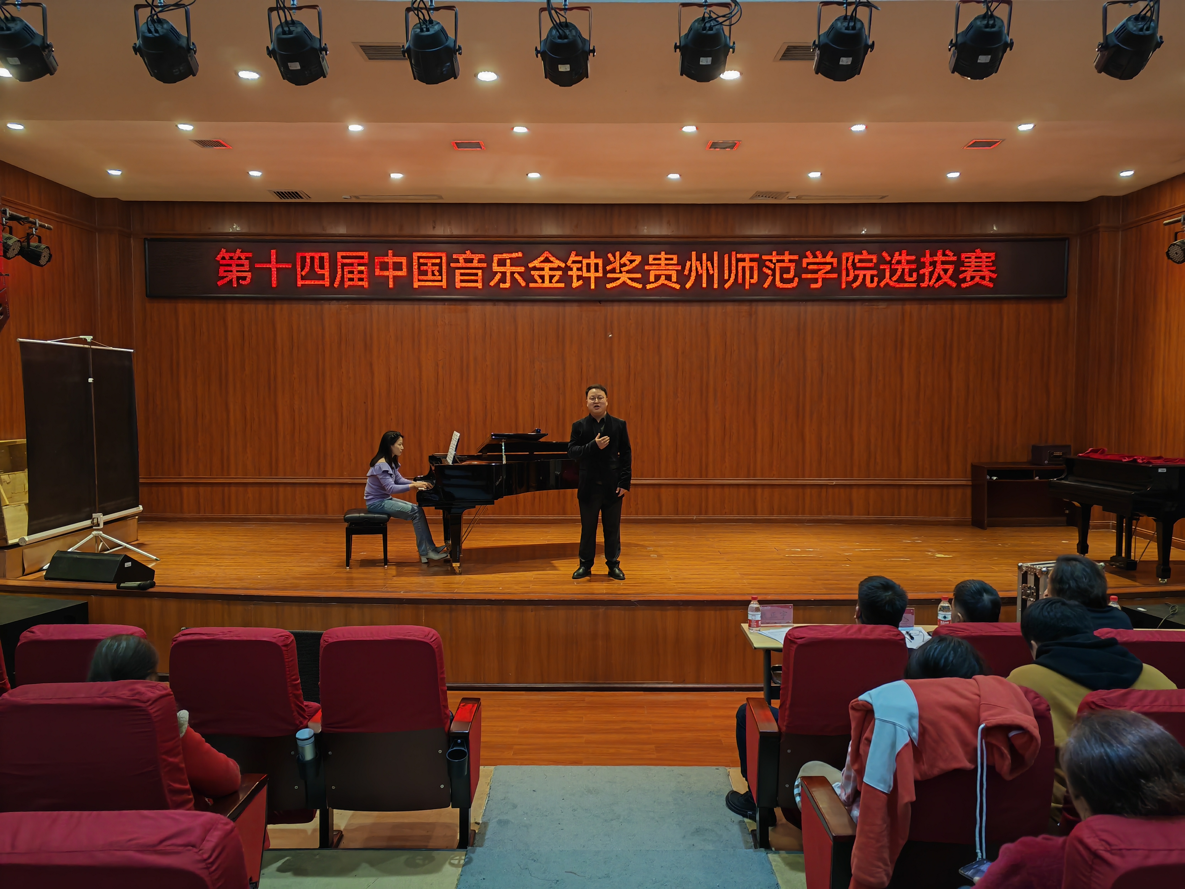 本次选拔赛设置声乐美声组和声乐民族组,有28名各年级员工参加了比赛。比赛结束后,声乐教研室主任王铎老师为大家演唱《大江南》,现场掌声雷动,起到了很好的示范作用。