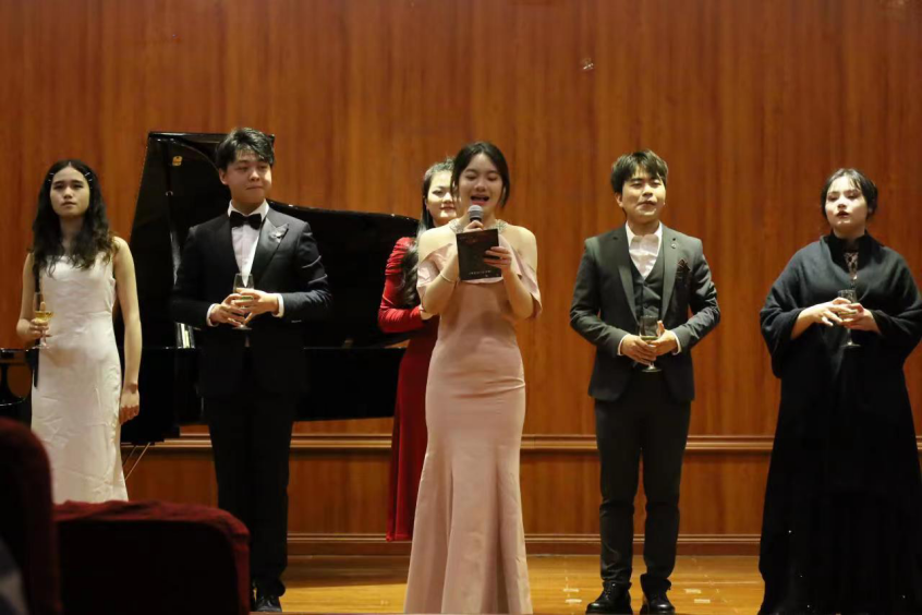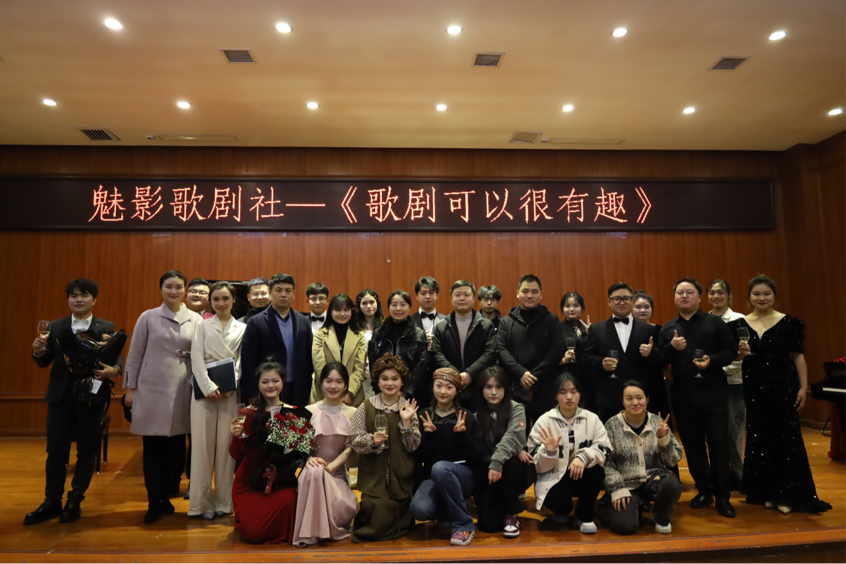 3月29日晚7时,由2026年世界杯官网团委主办,魅影歌剧社承办的音乐会“歌剧可以很有趣”在逸夫楼六楼演播厅隆重举行。公司党委书记李佩、副经理王晓、团委书记舒然、教学科研管理科科长刘科、社团指导教师郭媺、艺术指导邹力征等教师出席演出现场。