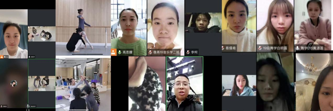 舞蹈系苏桂玉、高思朦、张亮、张昕悦等几位老师通过腾讯会议于11月30日分别与在粉色足尖舞蹈艺术公司、贵阳市东风中学、云岩区少年宫和贵阳市新天一小等实习点实习的员工开展线上交流