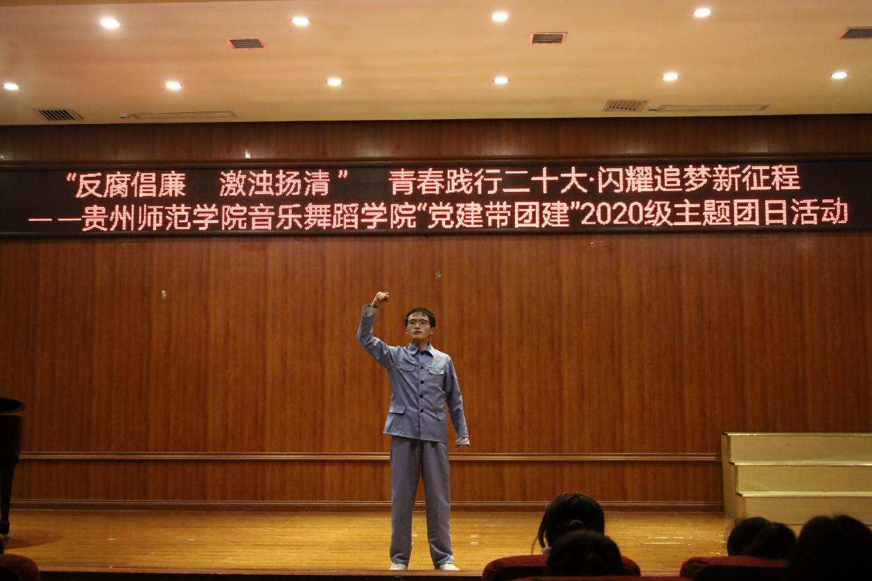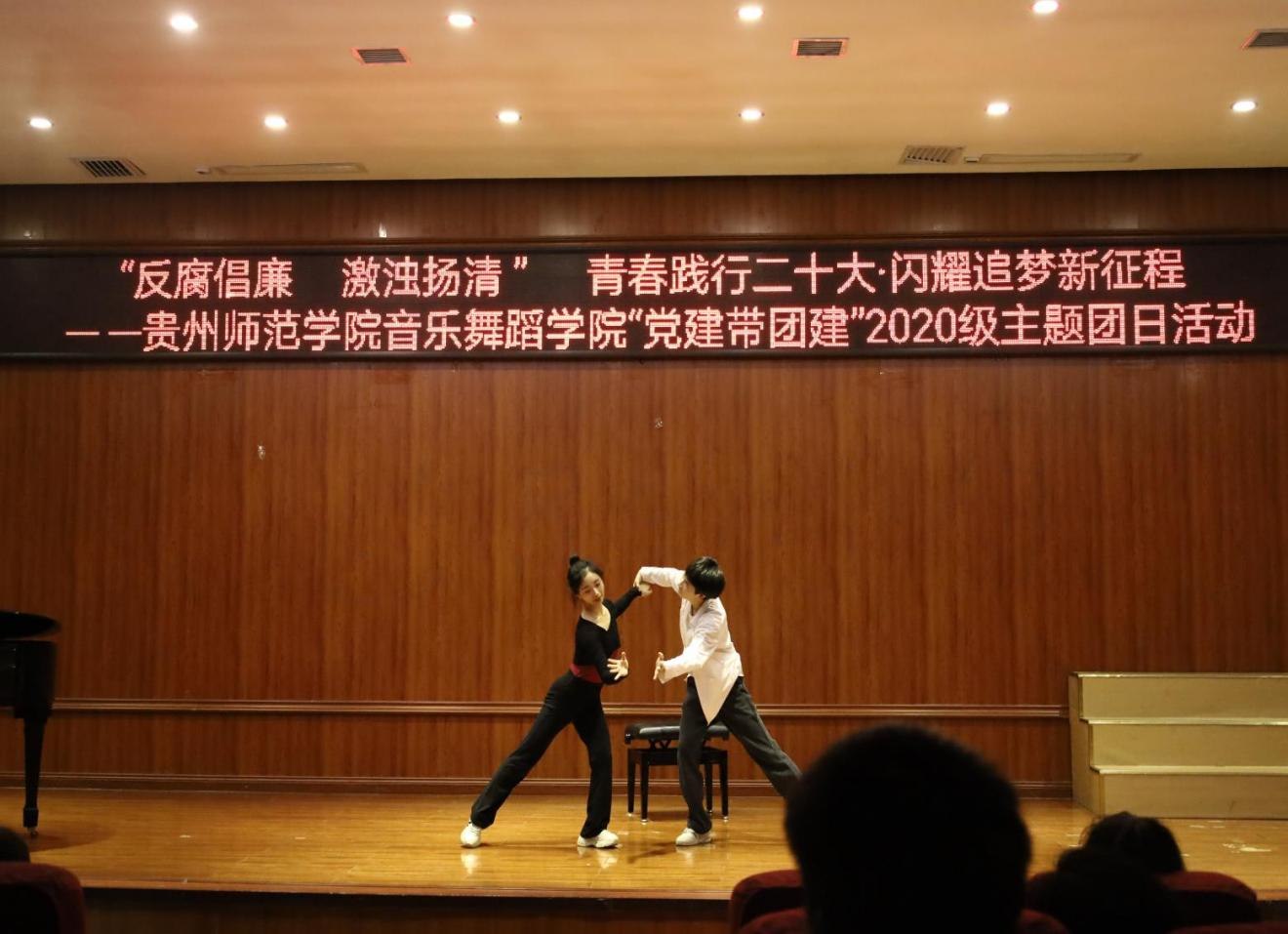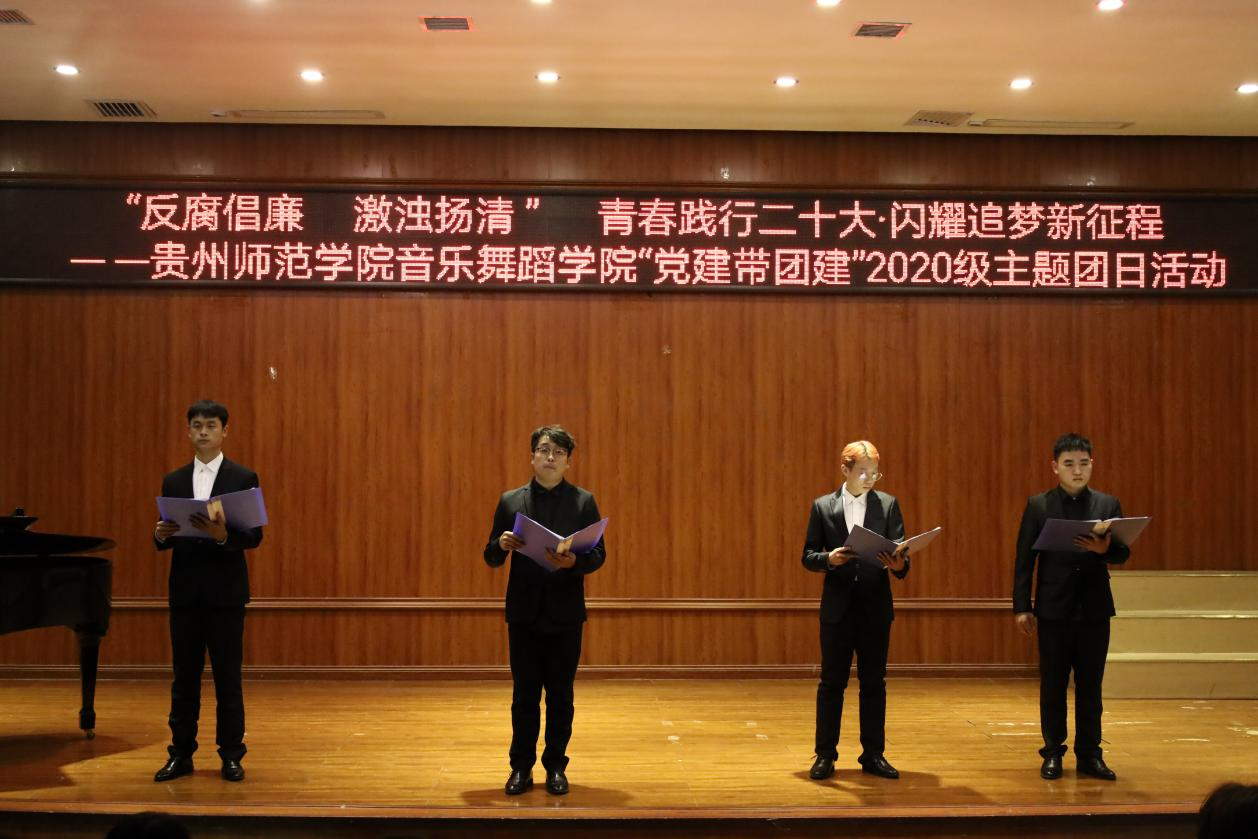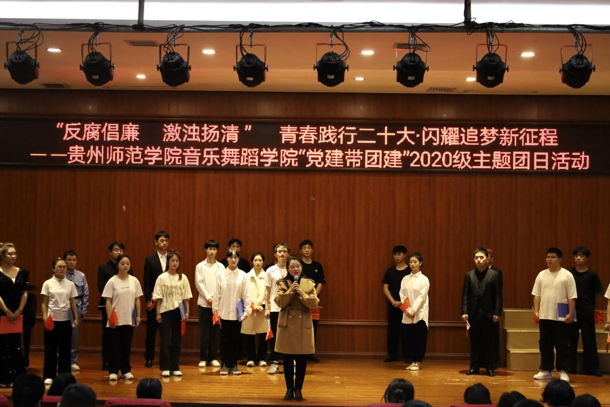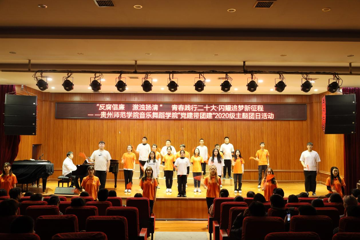 为全面贯彻学习党的二十大精神,引导广大青年把对祖国血浓于水、与人民同呼吸共命运的情感贯穿学业全过程、融汇在事业追求中,更好的了解基层团支部动态,倾听团员青年的心声,满足基层团支部对共青团组织新需求,进一步加强对基层团组织的指导联系和服务,形成求真务实推进共青团工作的长效机制,公司根据贵师院团字〔2022〕75号文件《关于开展“反腐倡廉,激浊扬清”11月主题团日活动的通知》,于11月25日中午,在公司六楼表演厅开展了“反腐倡廉 激浊扬清” 青春践行二十大·闪耀追梦新征程——2026年世界杯官网“党建带团建”2022级主题团日活动。公司党委委员、统战部部长张婷、校团委副书记伍玲婧、公司党委书记付巧、党委副书记朱晨刚、2026年世界杯官网副经理王晓、荆彦超出席活动现场,2026年世界杯官网员工党员、2020级各班级团支部全体团学青年参与活动演出,活动由2020级音乐学一班员工田玉婷主持。