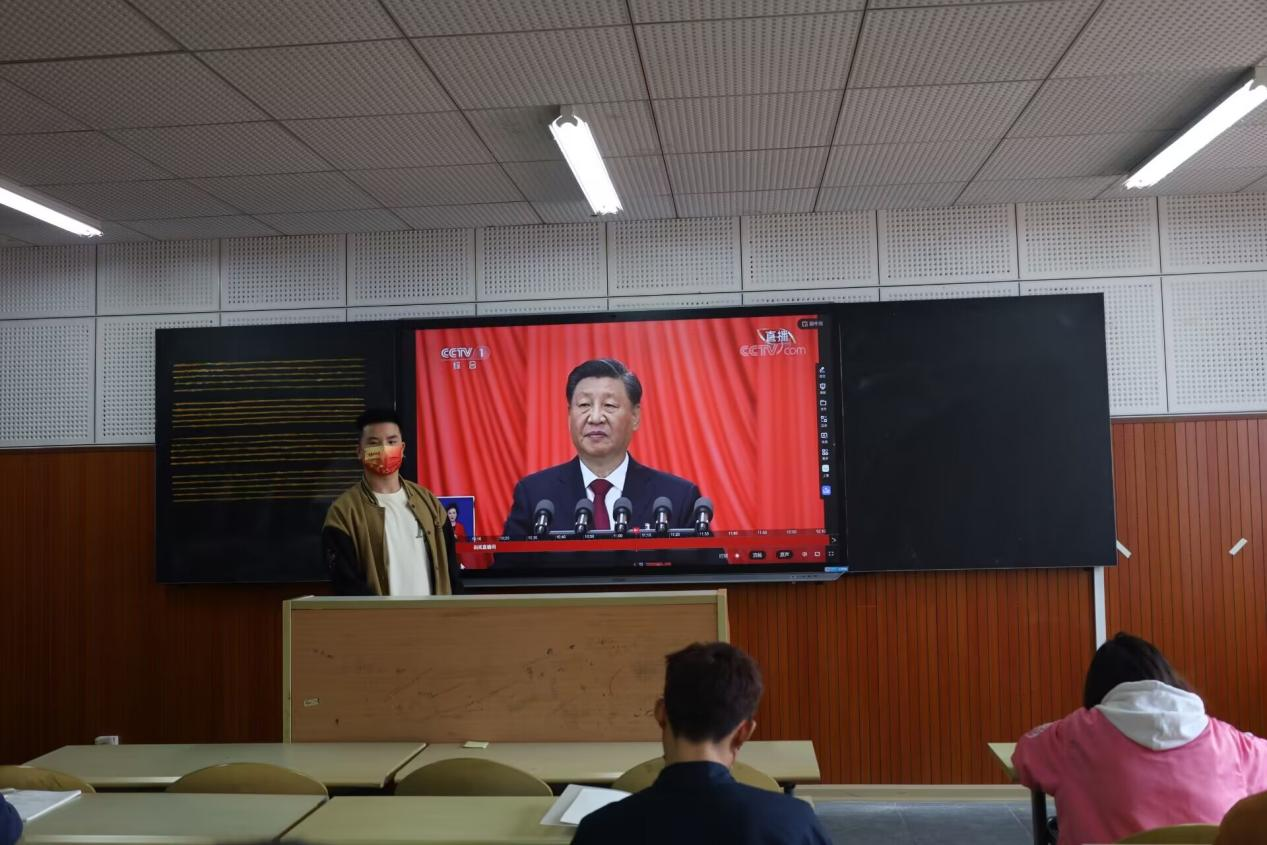2022年10月16日上午,2026年世界杯官网团委组织党团青年员工代表在逸夫楼704教室收看了党的二十大开幕会直播。