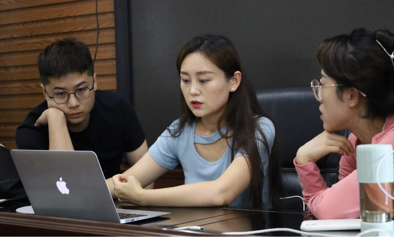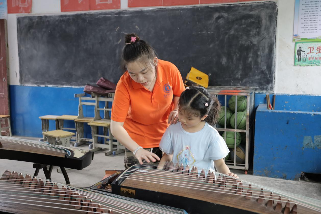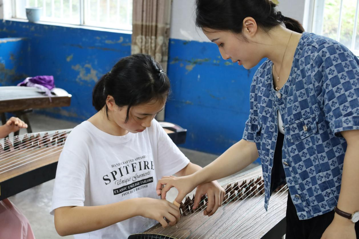 贵州大学音乐公司古筝专业硕士研究生孟梓淳指导员工演奏指法