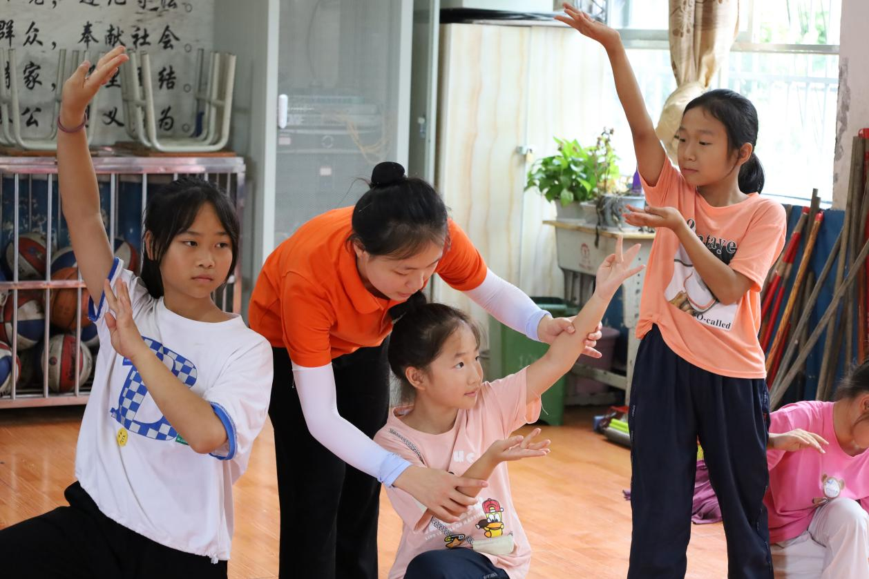 舞动专业志愿者黄盼进行傣族舞蹈教学