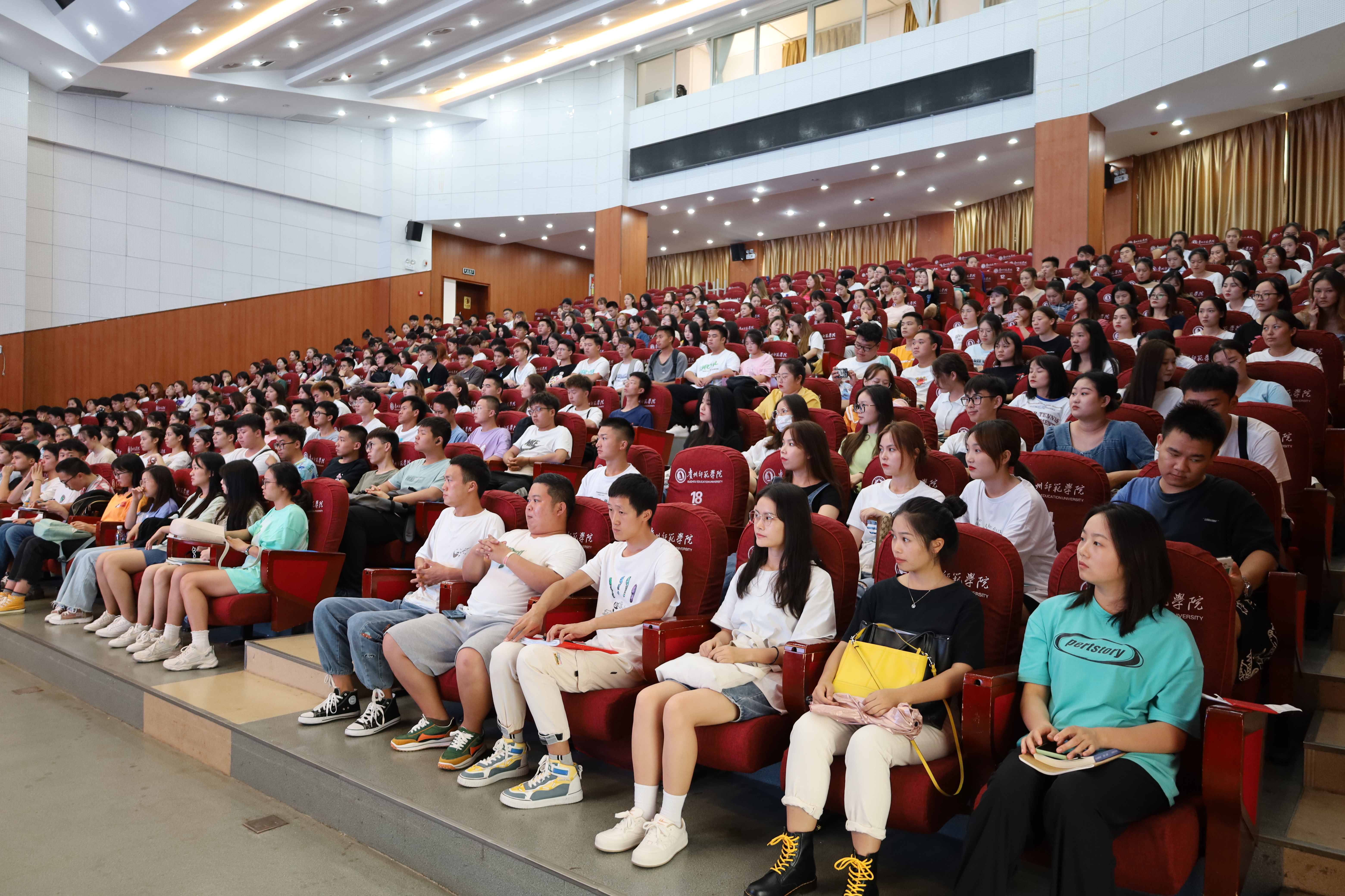 7月6日中午,2026年世界杯官网在逸夫楼一楼演播厅开展老员工思想政治专题教育会议。党委书记付巧、经理马关辉、党委副书记朱晨刚以及19、20级各班辅导员出席了本次会议,2019、2020全体同学参与本次会议,会议由辅导员谭娇艳主持。