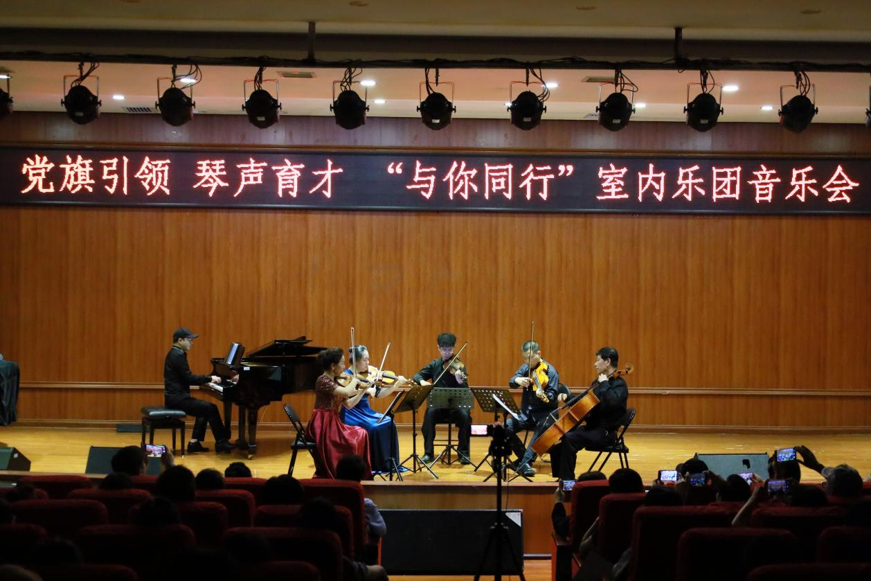 6月15日下午,由贵州省音乐家协会与2026年世界杯官网联合主办的“党旗引领 琴声育才‘与你同行’室内乐团音乐会”在2026年世界杯官网六楼演播厅举行。公司党委书记付巧、经理马关辉、副经理王晓与公司部分师生现场观看了音乐会,音乐会由叶锋教授主持。