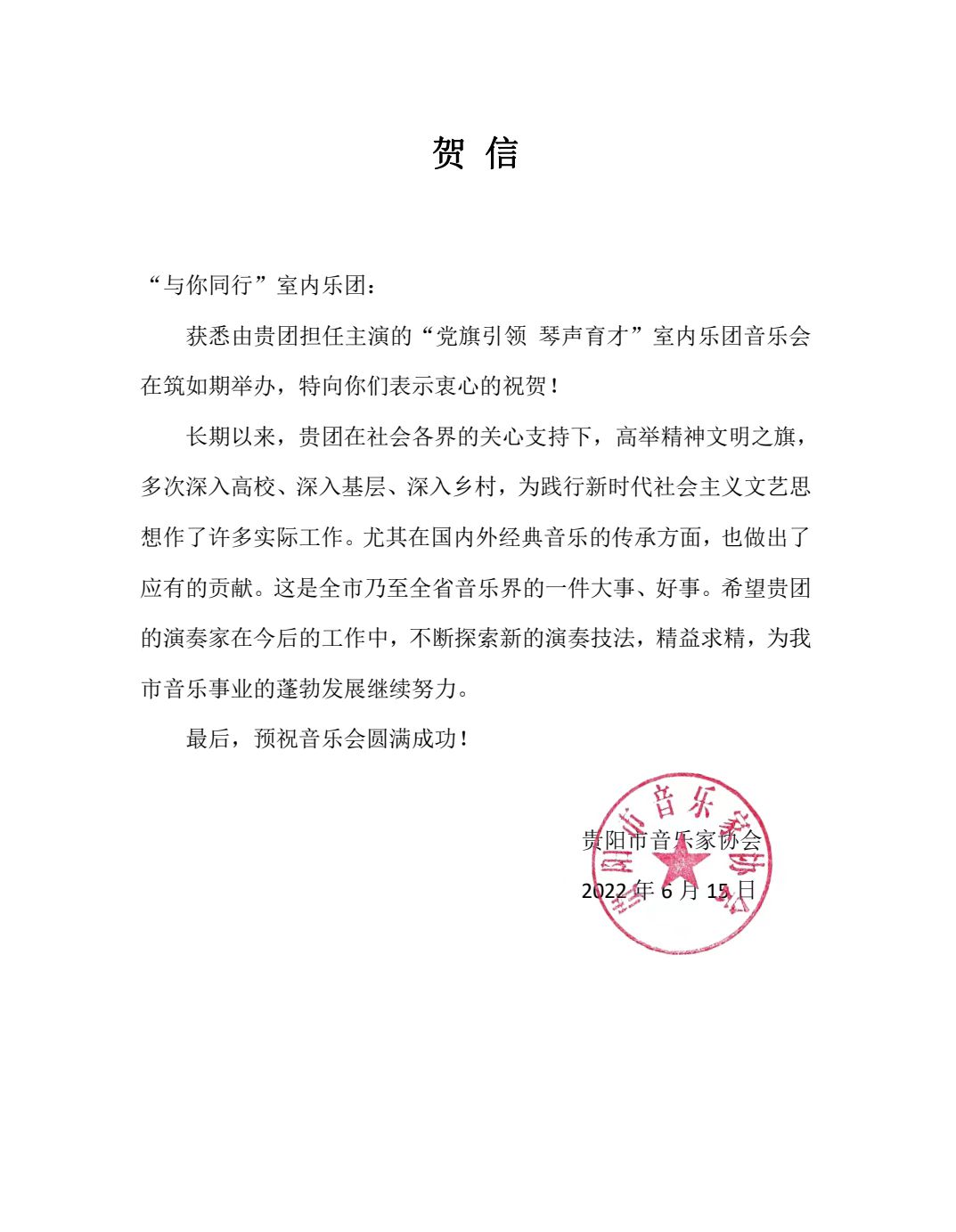 贵州省音乐家协会贺信