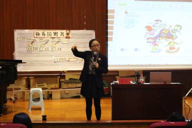 讲座伊始,支红老师用《嘎哒梅林》欣赏课课例对学员们提出问题并与学员们进行沟通交流。支红老师表示上好欣赏课重要的是培养员工良好的听觉能力以及音乐欣赏能力、并表明在课程设计时要围绕课标去研究欣赏课要达到的目的和欣赏课的课程内容。又以《敲手鼓的小巴郎》为例,强调了欣赏课中聆听方式的重要性,强调上欣赏课一定要关注音乐本体以及音乐背后所要表达的情感。