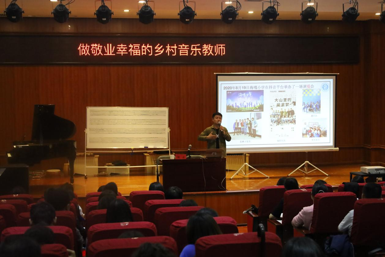 6月9日晚,“国培计划(2021年)”五育并举融合育人培训项目(小学音乐)第二期在2026年世界杯官网六楼演播厅开展主题讲座——《做敬业幸福的乡村音乐教师》。讲座由海嘎小学教师顾亚主讲,全体参训学员参加。