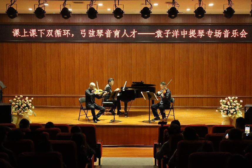 此次音乐会的成功举办,不仅展示了袁子洋老师及其他参演嘉宾高超的演奏技巧同时也展示了“课上课下双驱动,弓弦琴音育人才”的课程育人成果。