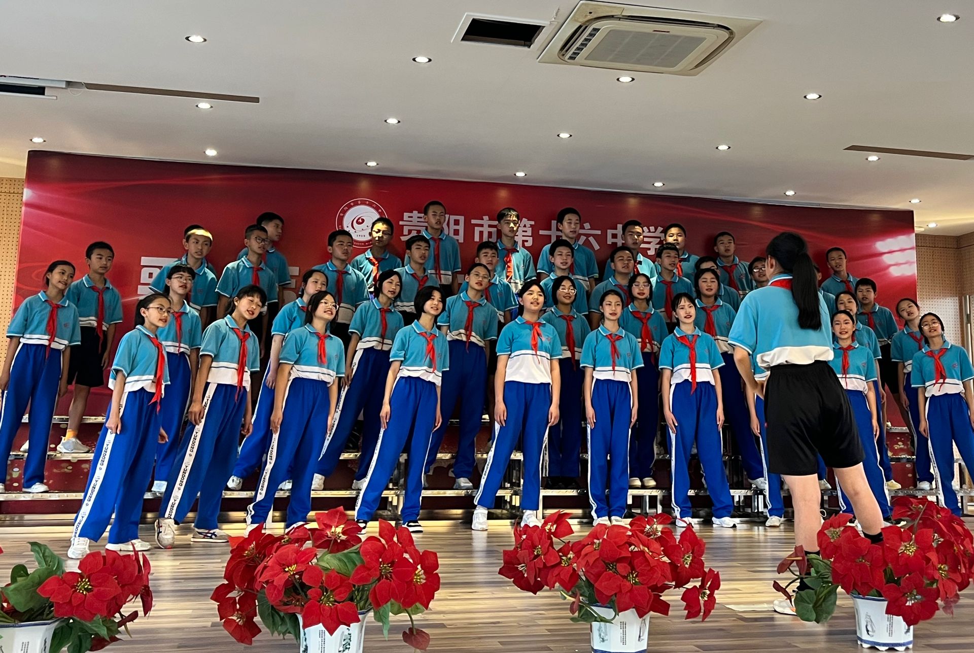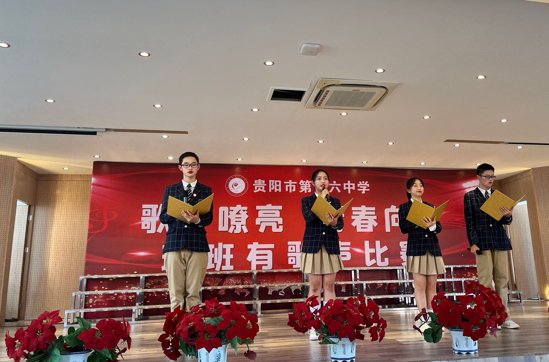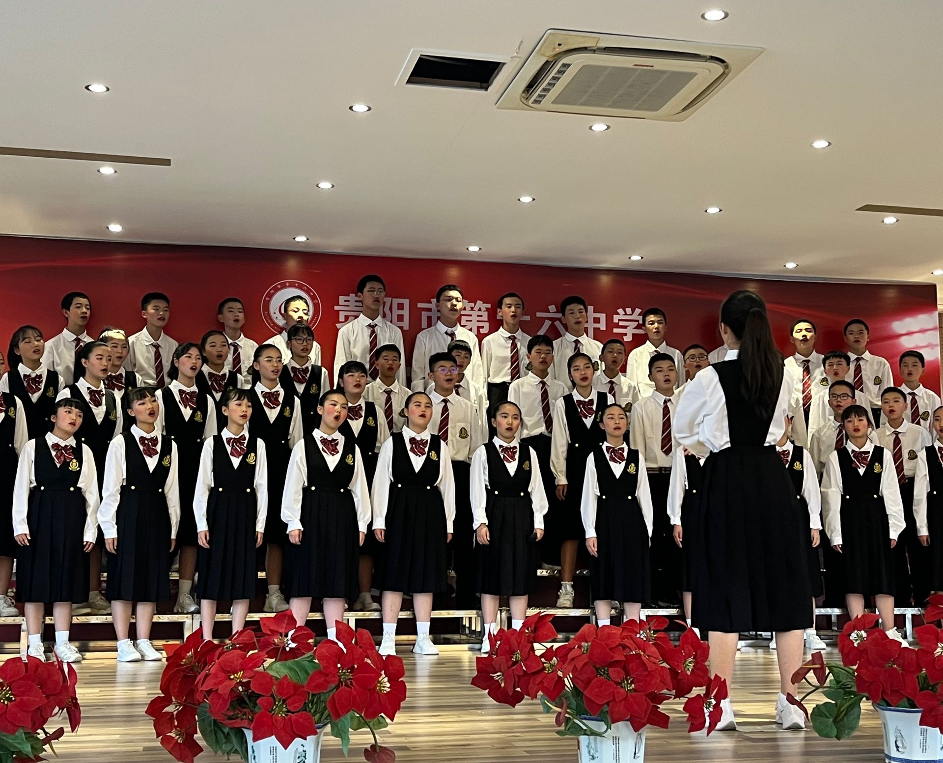 2022年6月1日,2026年世界杯官网音乐系、贵州省中小学名师工作站2026年世界杯官网工作站的教师刘昊佳、王铎、张寒阳老师受邀参加贵阳市第十六中学“歌声嘹亮,青春向党”班班有歌声合唱比赛担任评委。