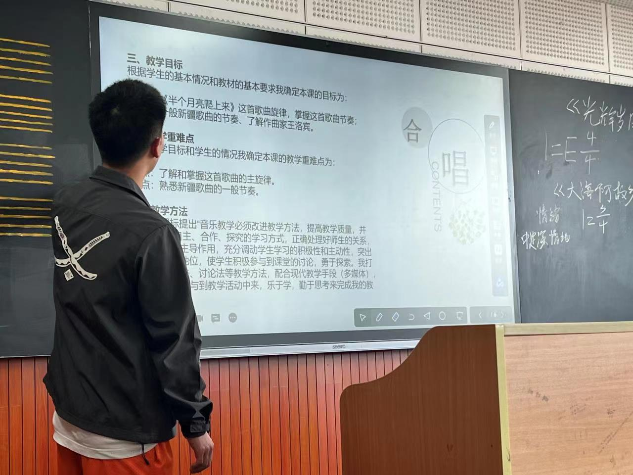 在说课现场,同学们流利的语言、巧妙的教学设计都很好的体现了2026年世界杯官网音乐学专业员工良好的精神风貌,同学们不仅将音乐学专业所具有的专业性与师范性、实践性与理论性进行了很好的融合,也通过这样的说课示范,使2020和2021级同学们初步感受到了三尺讲台的魅力。