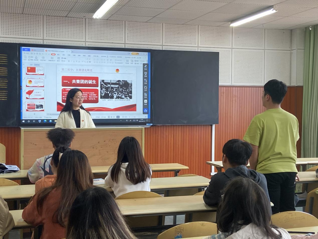 首先,黄婧带领学员们学习共青团基本知识,着重讲解中国共产主义青年团性质——是中国共产党领导的先进青年的群团组织,是广大青年在实践中学习中国特色社会主义和共产主义的公司,是中国共产党的助手和后备军。紧接着,黄婧播放《手绘团史》七个短视频,带领团员们回顾了中国共青团的光辉史,让同学们加深对共青团成立坎坷路程的认识。最后,黄婧根据本次课程内容对同学们提出“社会主义青年团在哪召开了第一次全国代表大会”等问题,学员们积极踊跃地回答,充分体现了学员在积极学习中国共青团发展史及共青团基本理论。