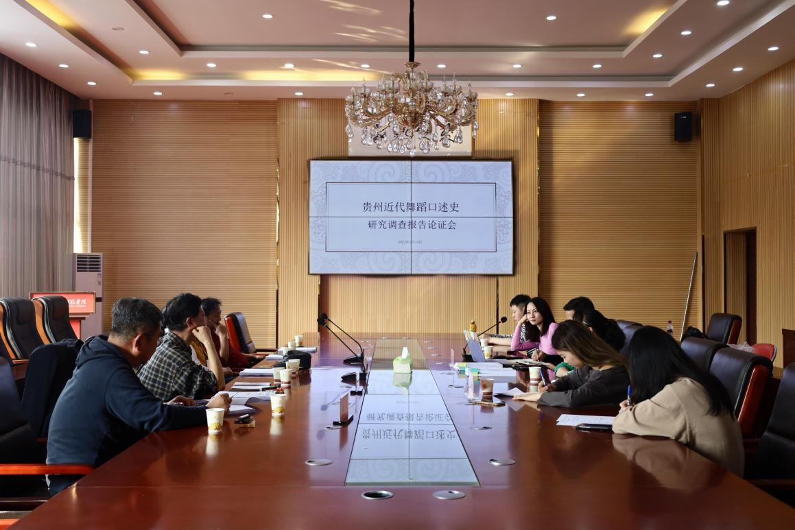 与会的五位专家听取了肖伟老师的汇报,并就《贵州近代舞蹈口述史研究调查报告》依次发表意见。其中,谢彬如在发言中结合自己长期从事文化艺术理论研究工作的经历,他建议从历史文献方面入手,加强舞蹈工作者的历史文化涵养,强调舞蹈工作者对贵州历史文化一定要有更加广阔和更加深远的认识与思考。沈毅建议,贵州舞蹈口述史研究要尽量突出地方特色舞蹈文化,多方位展示地方原生态少数民族舞蹈文化,如民族舞剧《蔓萝花》等。其他几位专家陆续就调查报告展开讨论,他们一致表示,《贵州近代舞蹈口述史研究》这一课题非常有意义,对研究团队前期开展的工作给予了一致好评,对该课题顺利结项满怀期望。