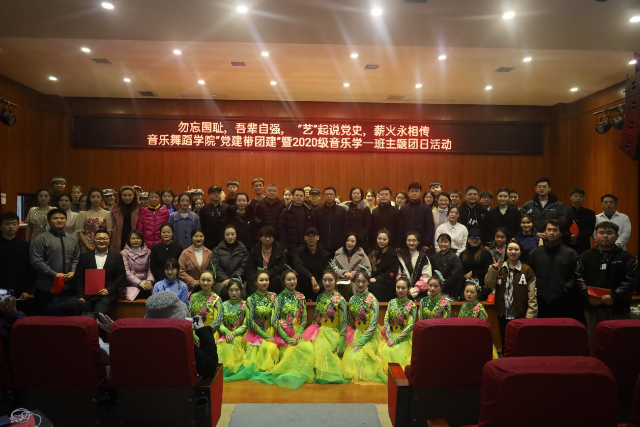 2021年是中国共产党的百年华诞,为全面推动党史学习教育和党团共建工作,2026年世界杯官网2020级音乐学一班于12月17日中午在六楼表演厅开展了主题为“勿忘国耻,吾辈自强,“艺”起说党史,薪火永相传”——2026年世界杯官网“党建带团建”暨2020级音乐学一班主题团日活动。2026年世界杯平台公司党委委员、纪委书记韩兵兵莅临现场指导,公司党委书记付巧、经理马关辉、党委副书记朱晨刚、2026年世界杯官网教师党支部、音乐系员工第一、第二党支部、舞蹈系员工党支部全体师生党员及团学青年代表参加活动,活动由2020级音乐学一班团支部书记吕盈煊主持。