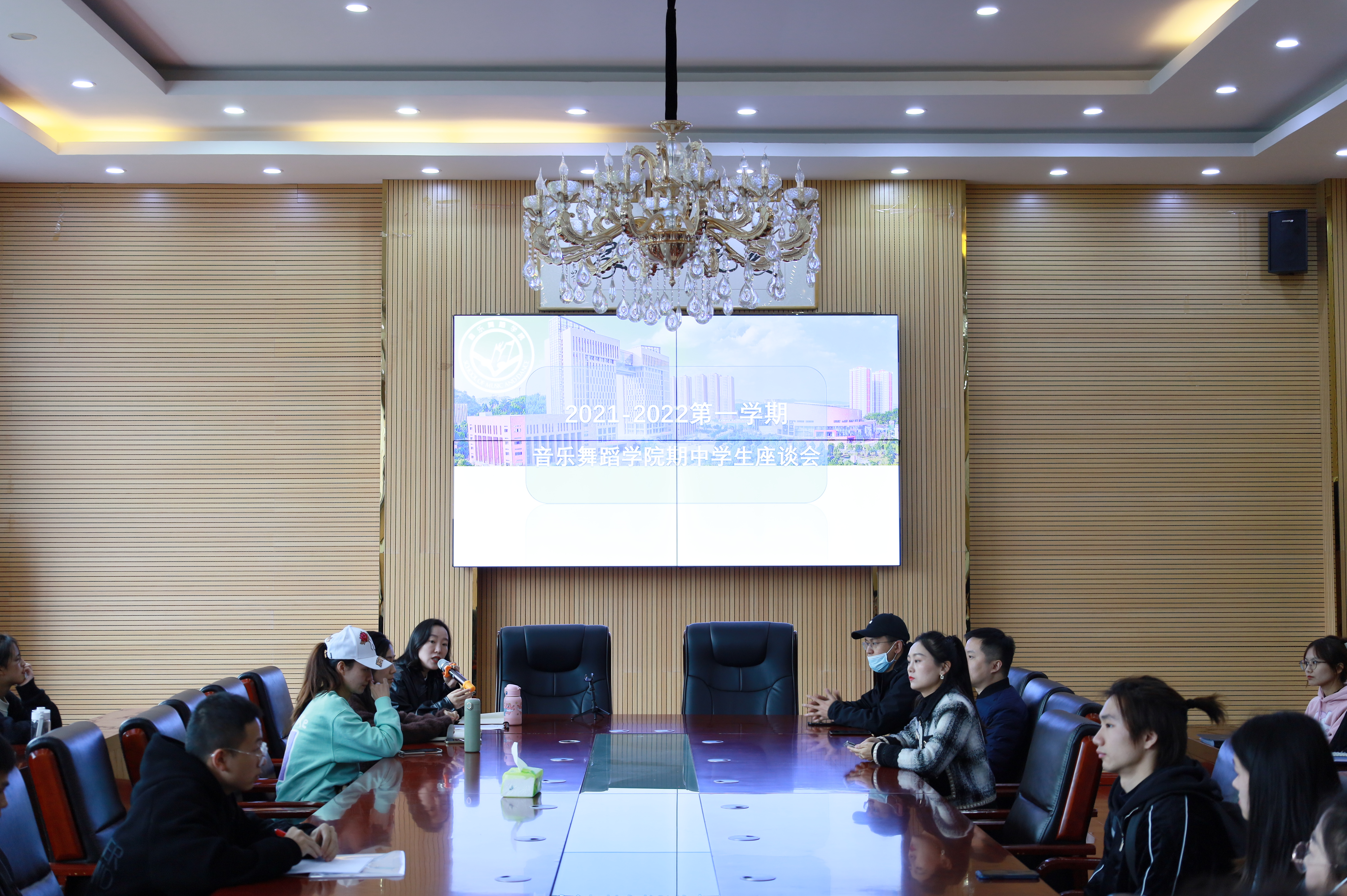 此次座谈会以更好的了解员工学习和生活,更好的倾听员工心声为目的,在平等、轻松、开放的氛围中,员工代表就学习生活现状和老师们展开交流,提出了在学习生活过程中遇到的各种问题。首先,大三的班委率先提出了公司练功房存在的设施老化问题需要改进。老师回答到舞蹈室的问题将从基础设施方面进行根本解决,同时要求员工们也要爱护好设施并保持良好的学习环境;随后各个年级的班委还补充到琴房的钢琴音准不准等问题。最后,张蕊表示,对员工们提出的意见和建议,公司将进行梳理、研究、并尽快解决,为员工创造更好的学习生活环境。