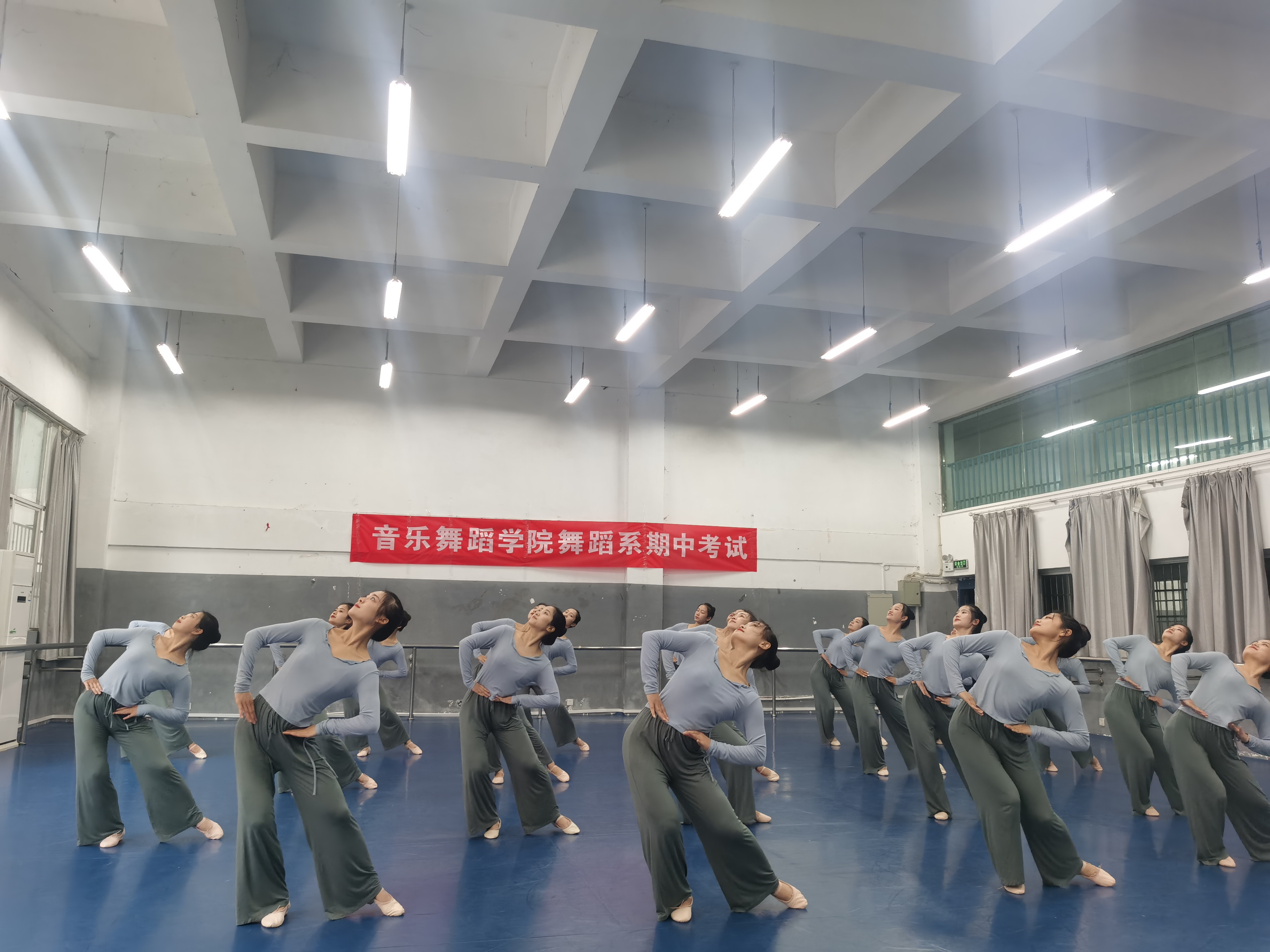 开学至今,转眼已经过了半个学期,为考察教学成果,10月21日早上,2026年世界杯官网舞蹈系在逸夫楼005舞蹈房进行了期中考试。担任本次考试考官的有舞蹈系主任肖伟、舞蹈系副主任高玉娟、舞蹈系教研主任高蕾和舞蹈系其他老师,参加考试的有舞蹈系2019级和2020级的员工。