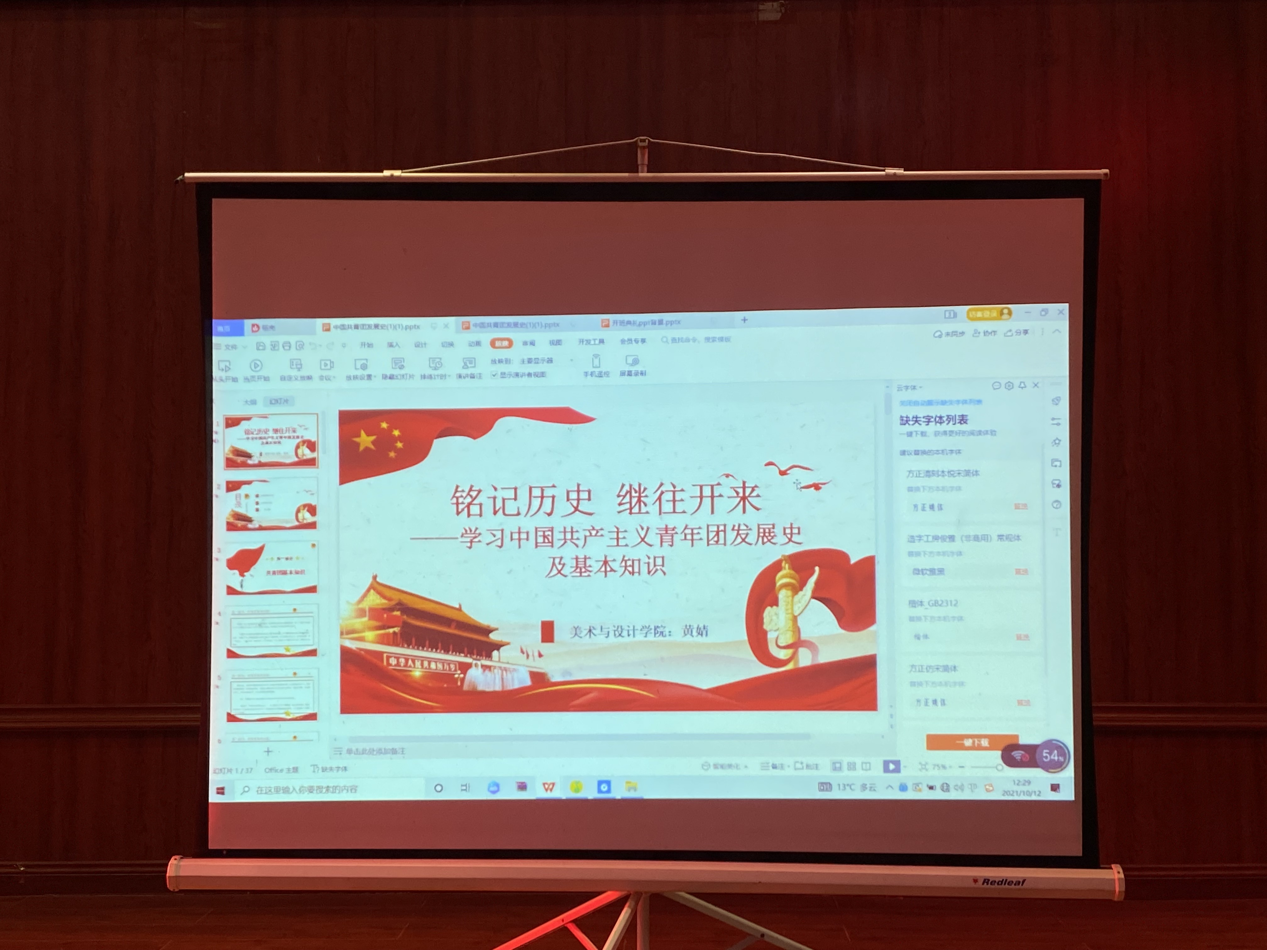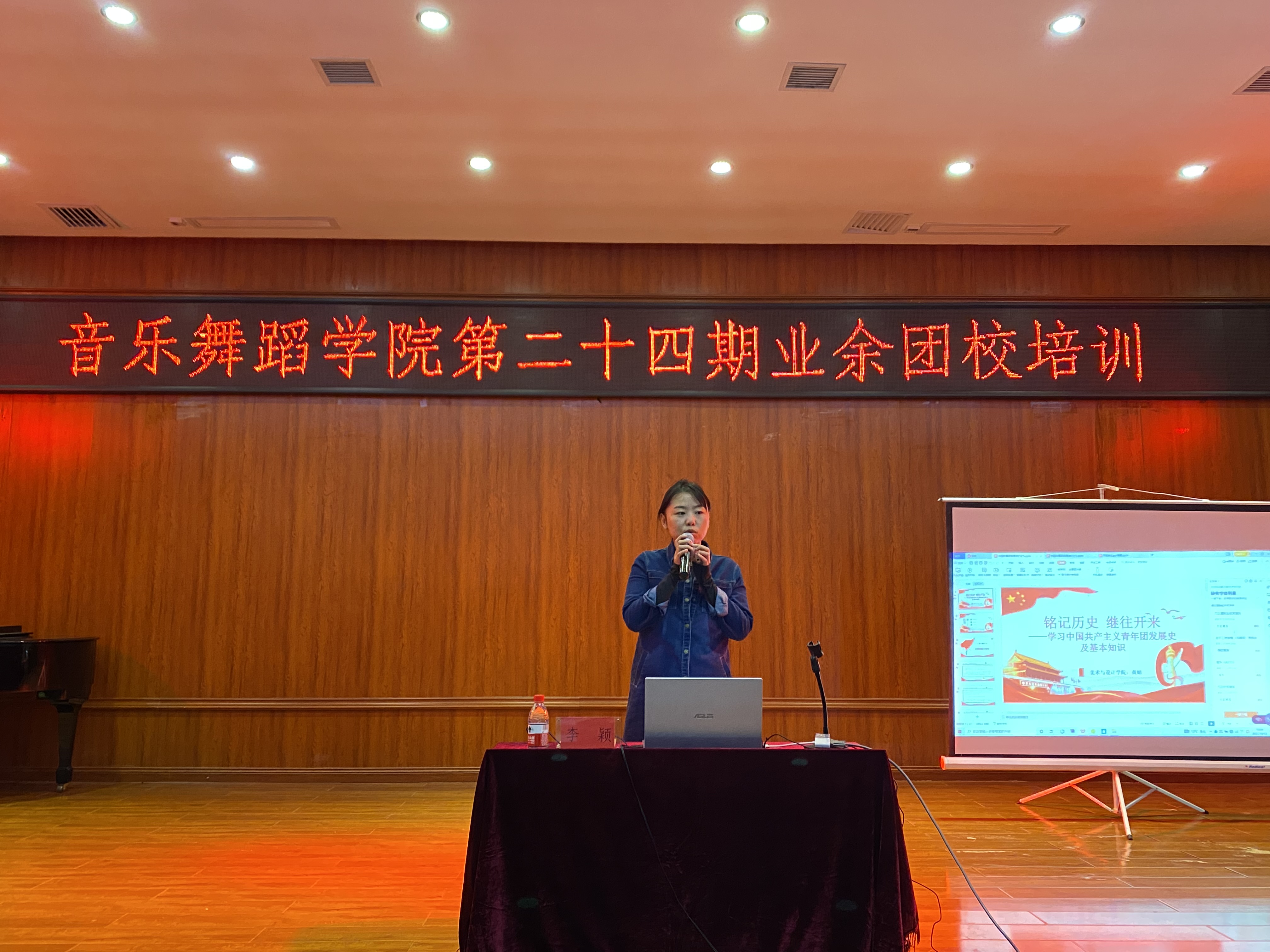 10月12日中午,2026年世界杯官网团委在六楼音乐厅开展了第二十四期业余团校培训,本专题为“中国共青团发展史及共青团基本理论”。此次专题由美术与设计公司团学办公室李颖老师进行授课,参与本次培训的有全体参训学员。