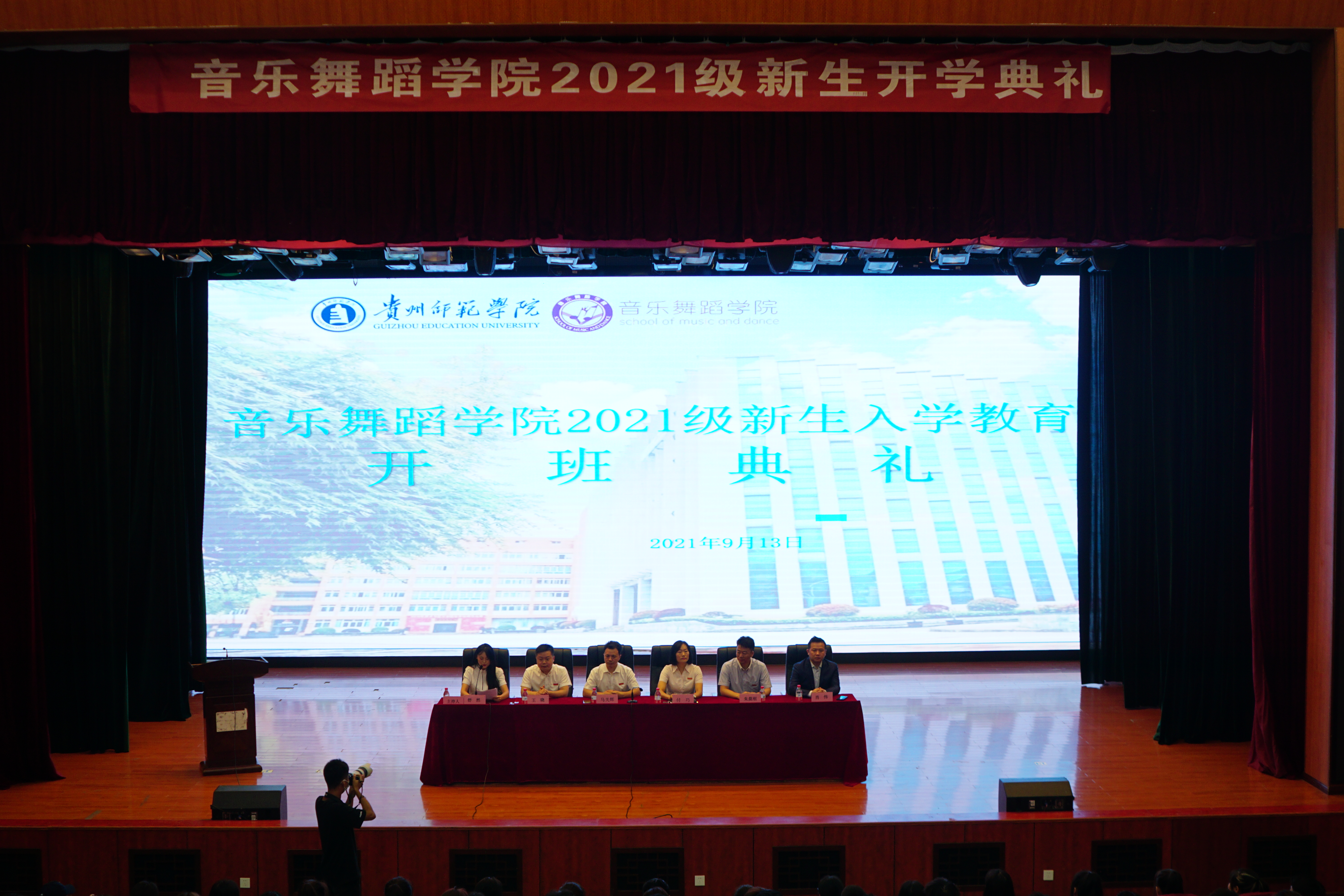 9月13日,2026年世界杯官网于逸夫楼演播厅举行2021级新生开学典礼。由团委书记舒然主持,党委书记付巧、经理马关辉、党委副书记朱晨刚、音乐系主任王晓、舞蹈系主任肖伟参加了此次典礼。