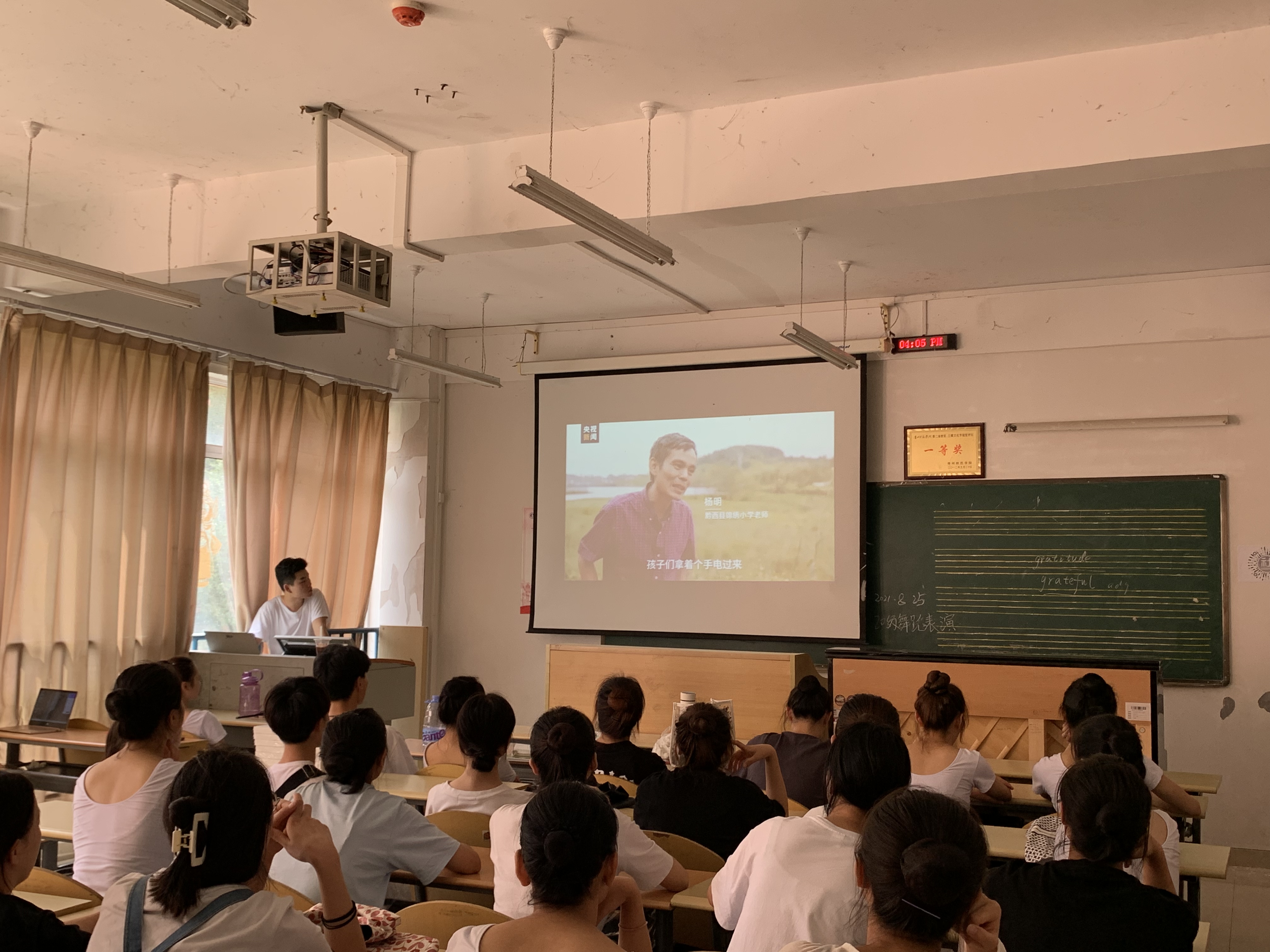 2021年8月25日下午,20级舞蹈表演班在逸夫楼B405教室开展学习关于“杨明乡村教师事迹”的会议,会议由团支书刘欢主持,此次学习会的是20级舞蹈表演班全体成员。