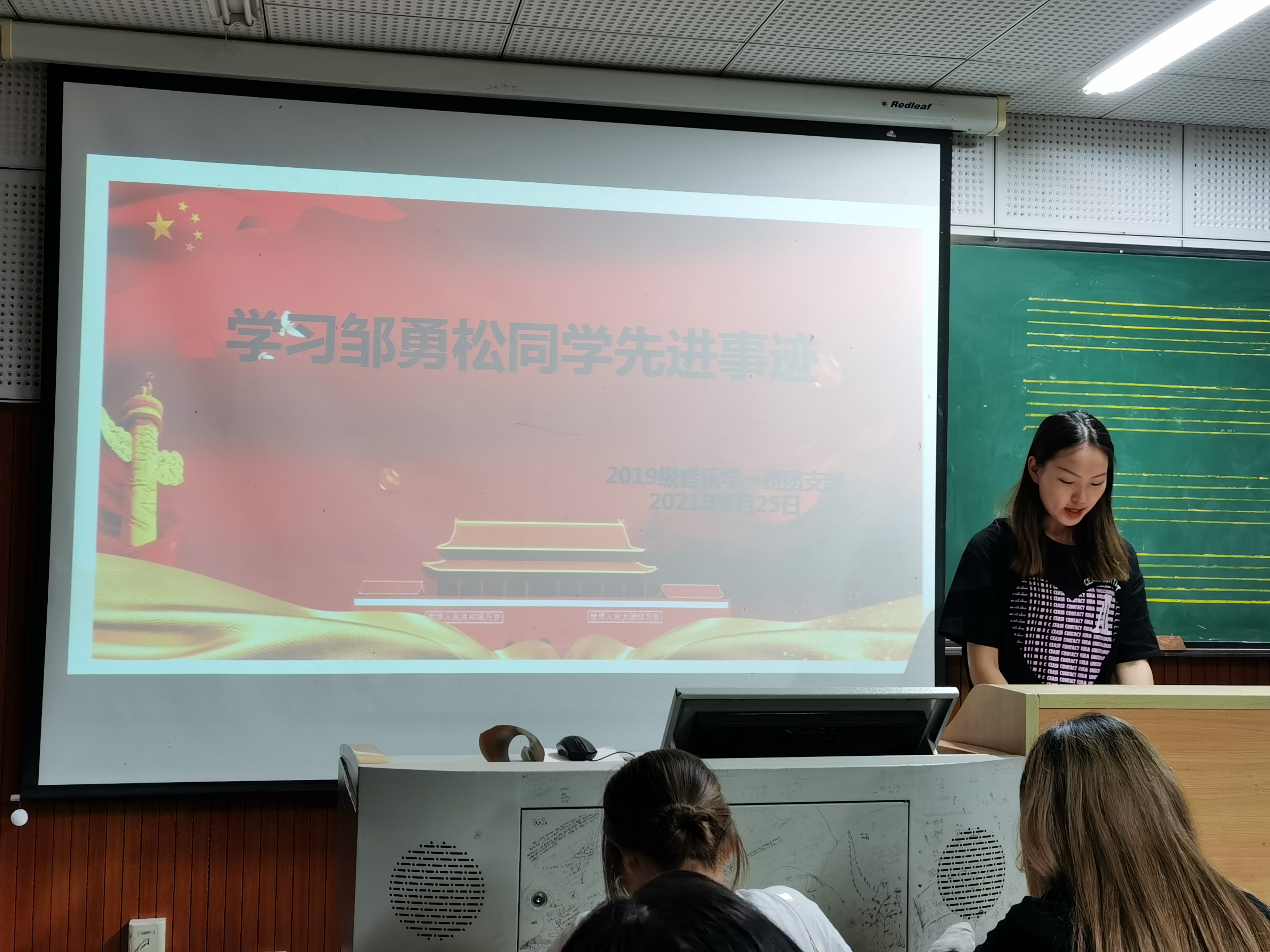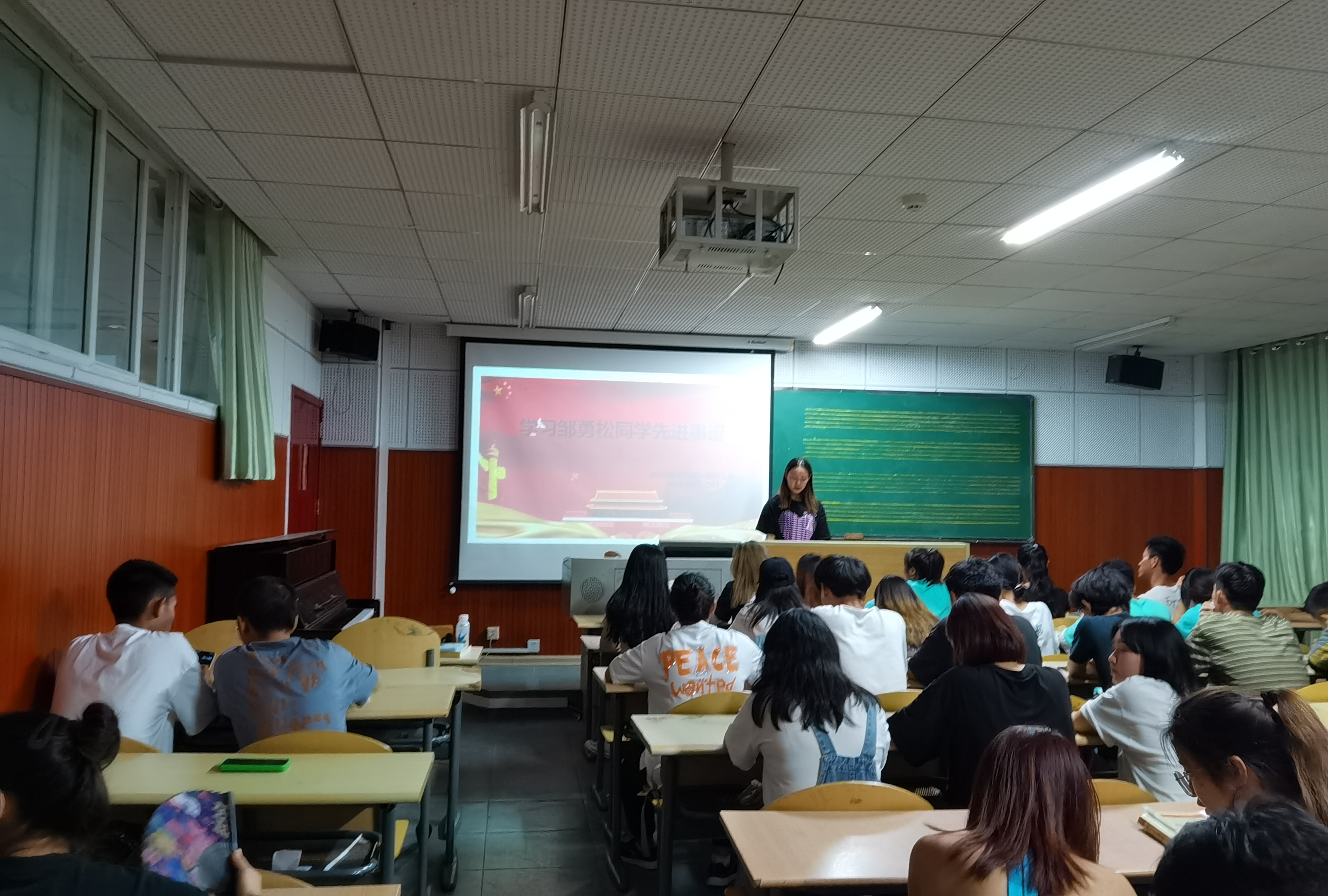 8月25日中午,2019级音乐学一班团支部在2026年世界杯官网逸夫A704教室开展学习邹勇松同学的感人事迹学习会,参加本次学习的是2019级音乐学一班全体团学青年,此次学习会由团支书代瑞敏同学主持。