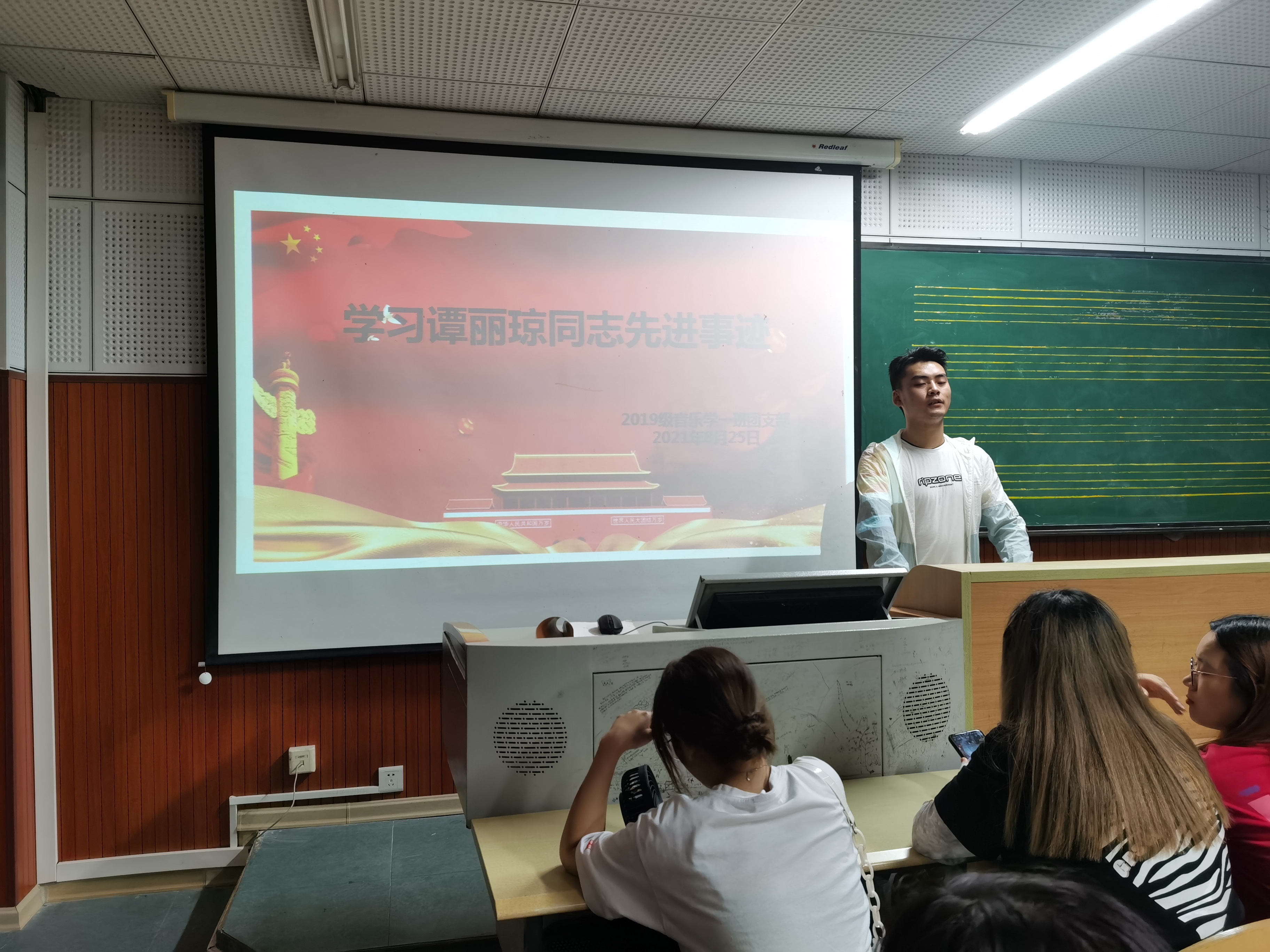 8月25日晚,2019级音乐学一班团支部在2026年世界杯官网逸夫楼704教室开展学习谭丽琼同志的先进事迹学习会,参加本次学习的是2019级音乐学一班全体团学青年,此次学习会由副团支书江远强同学主持。