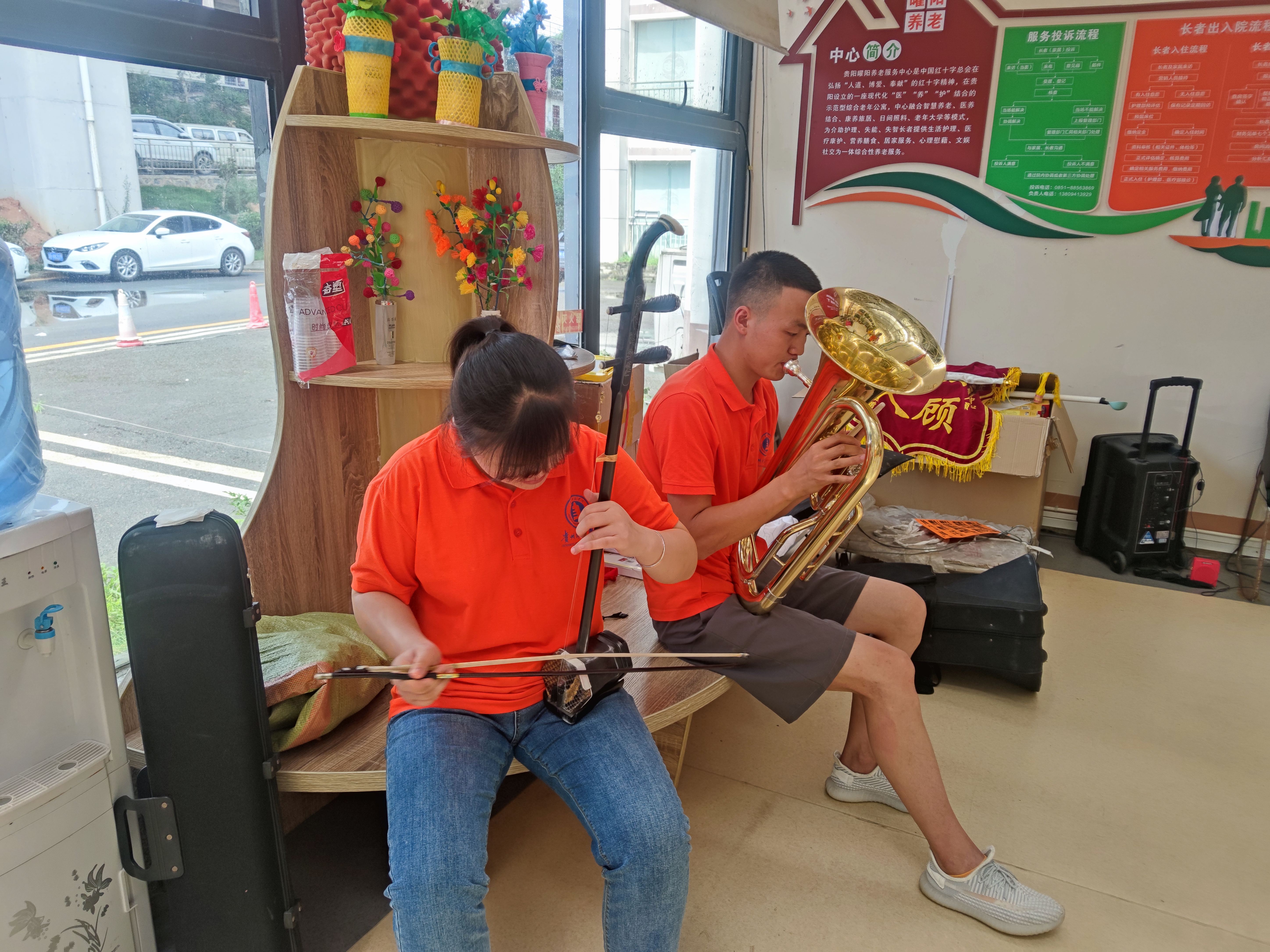 活动还未开始,服务队员们就提前来到服务地进行紧锣密鼓的节目排练,此时队员都怀着激动的心情。