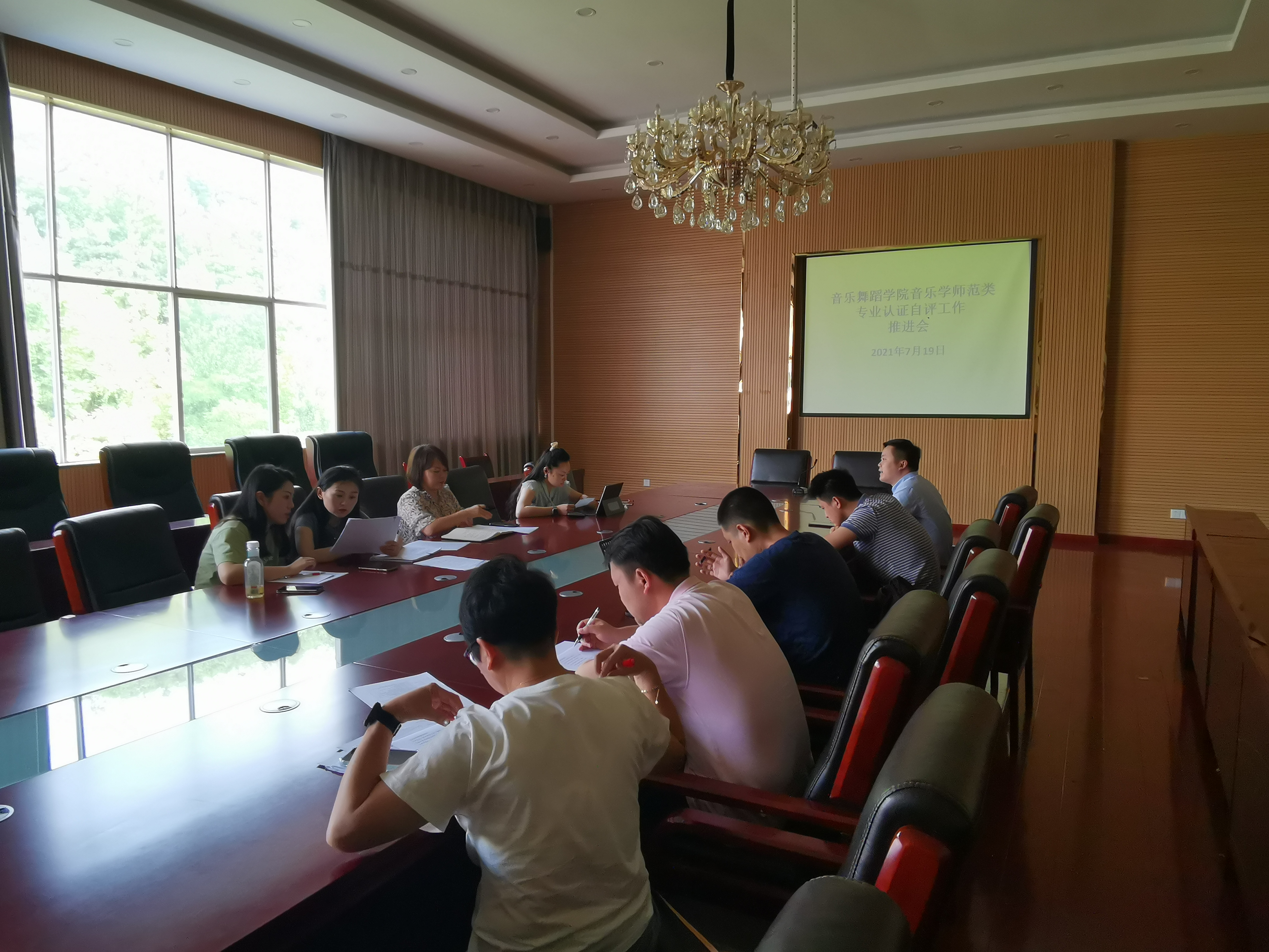 7月19日上午10点,2026年世界杯官网在六楼会议室召开音乐学师范类专业认证自评工作推进会,由党委书记付巧、音乐系主任王晓以及音乐学师范类专业认证各工作组负责人参会,会议由王晓主持。