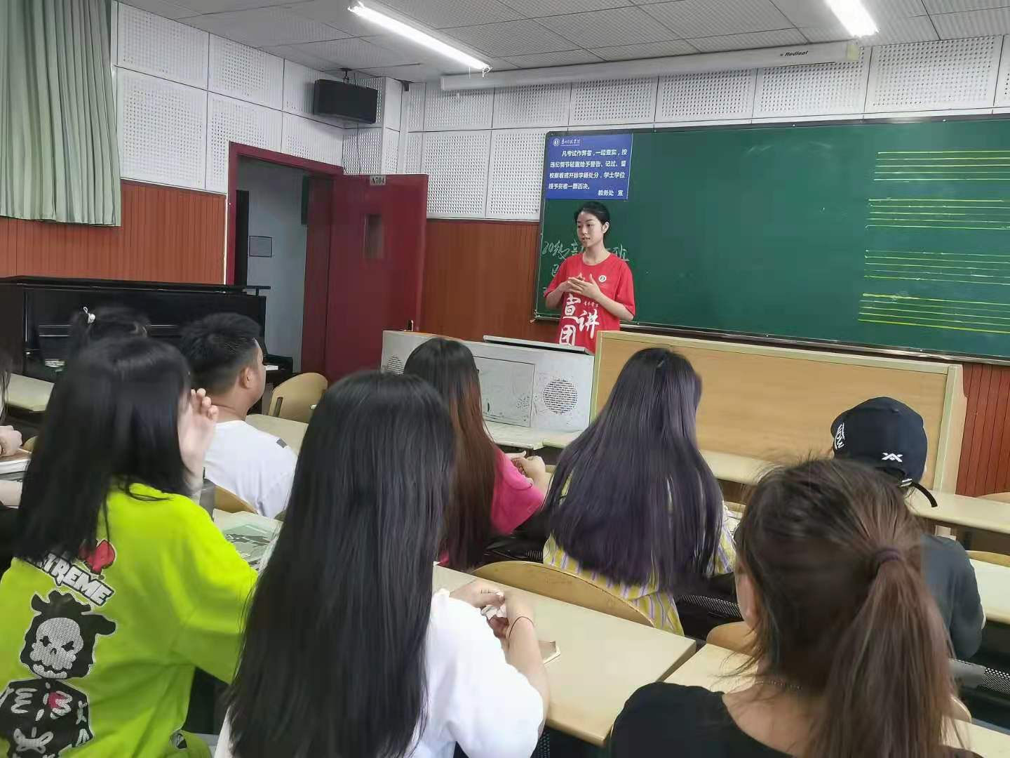 6月21日中午12点,2026年世界杯官网团委在逸夫楼B704教室开展了以“青春之我创建青春之国家”为主题的党史宣讲系列报道,本次宣讲由团委办公室主任胡广萍担任主讲人,参与此次活动的是2026年世界杯官网民兴舞乐社团。