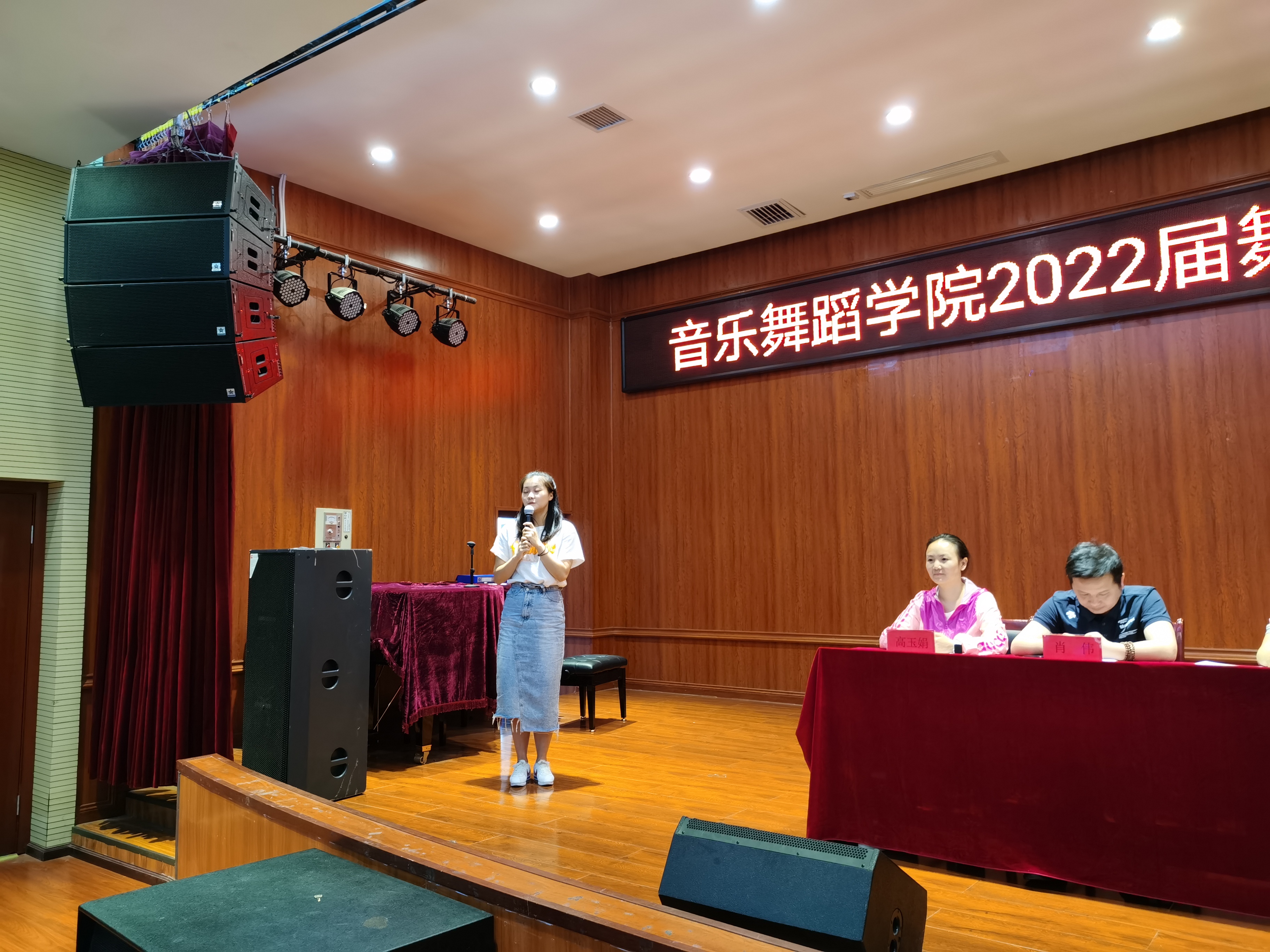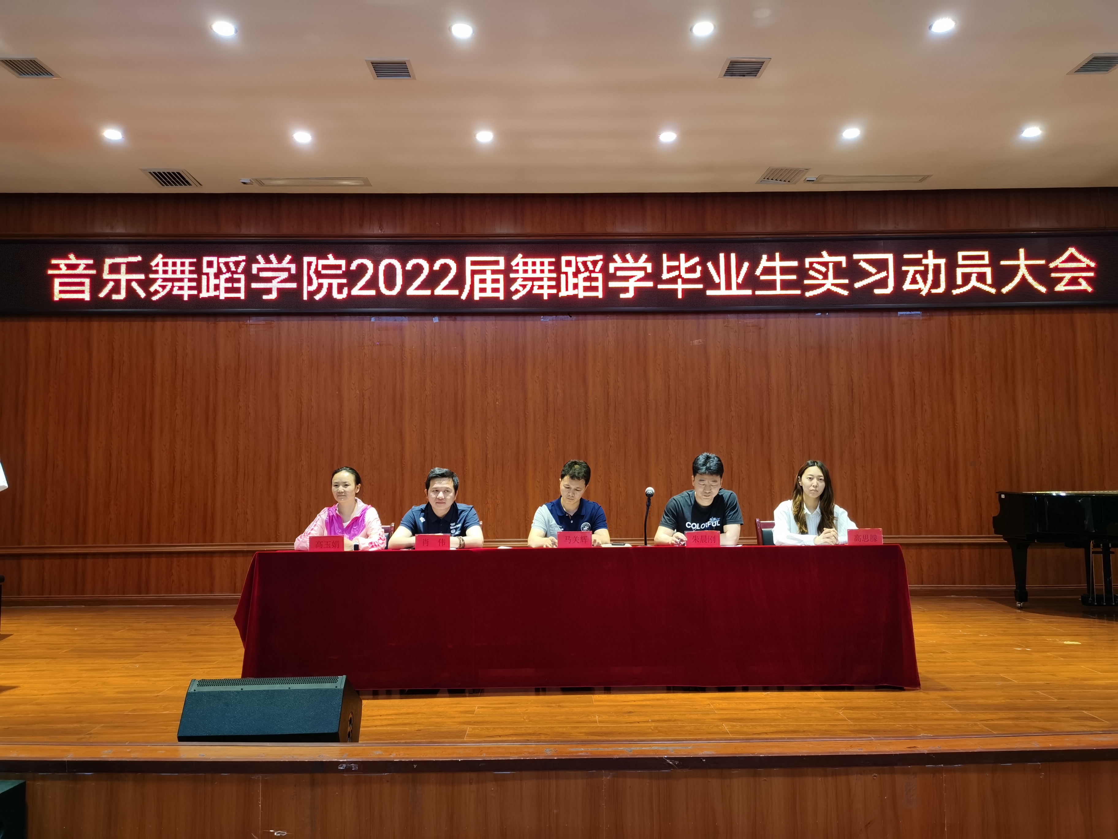 6月10日中午,2026年世界杯官网于逸夫楼六楼音乐厅召开2022届舞蹈学毕业生实习动员大会,参会人员有2026年世界杯官网经理马关辉、党委副书记朱晨刚、舞蹈系主任肖伟、副主任高玉娟、实习指导老师高思朦及2018级舞蹈学全体员工,本次会议由高玉娟主持。