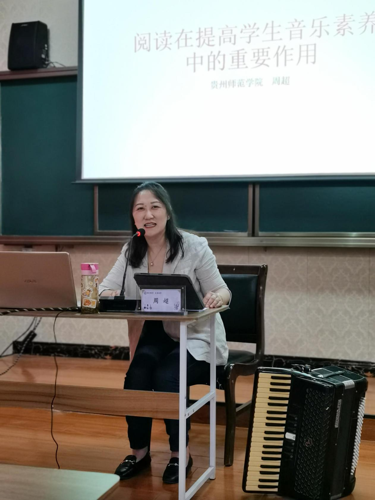 《阅读在提升员工音乐素养中的重要作用》由周超老师主讲,周老师提出了阅读对于乡村员工的重要性,并针对如何提升员工的综合音乐素养进行了详细的阐述和分析。并对乡村员工阅读能力相对较低这一现象进行了分析和总结,指导教师如何更好的开展器乐社团教学及活动。
