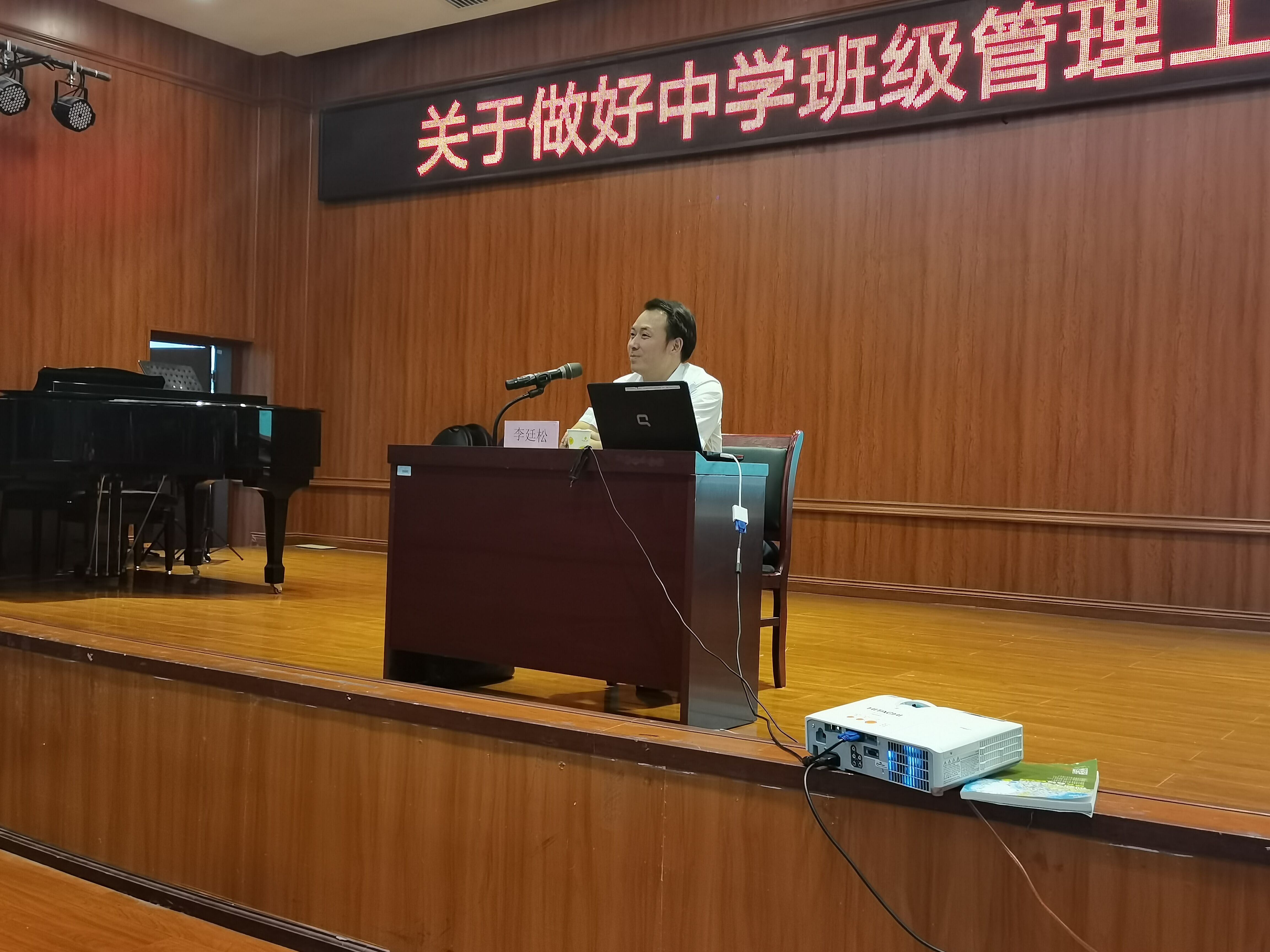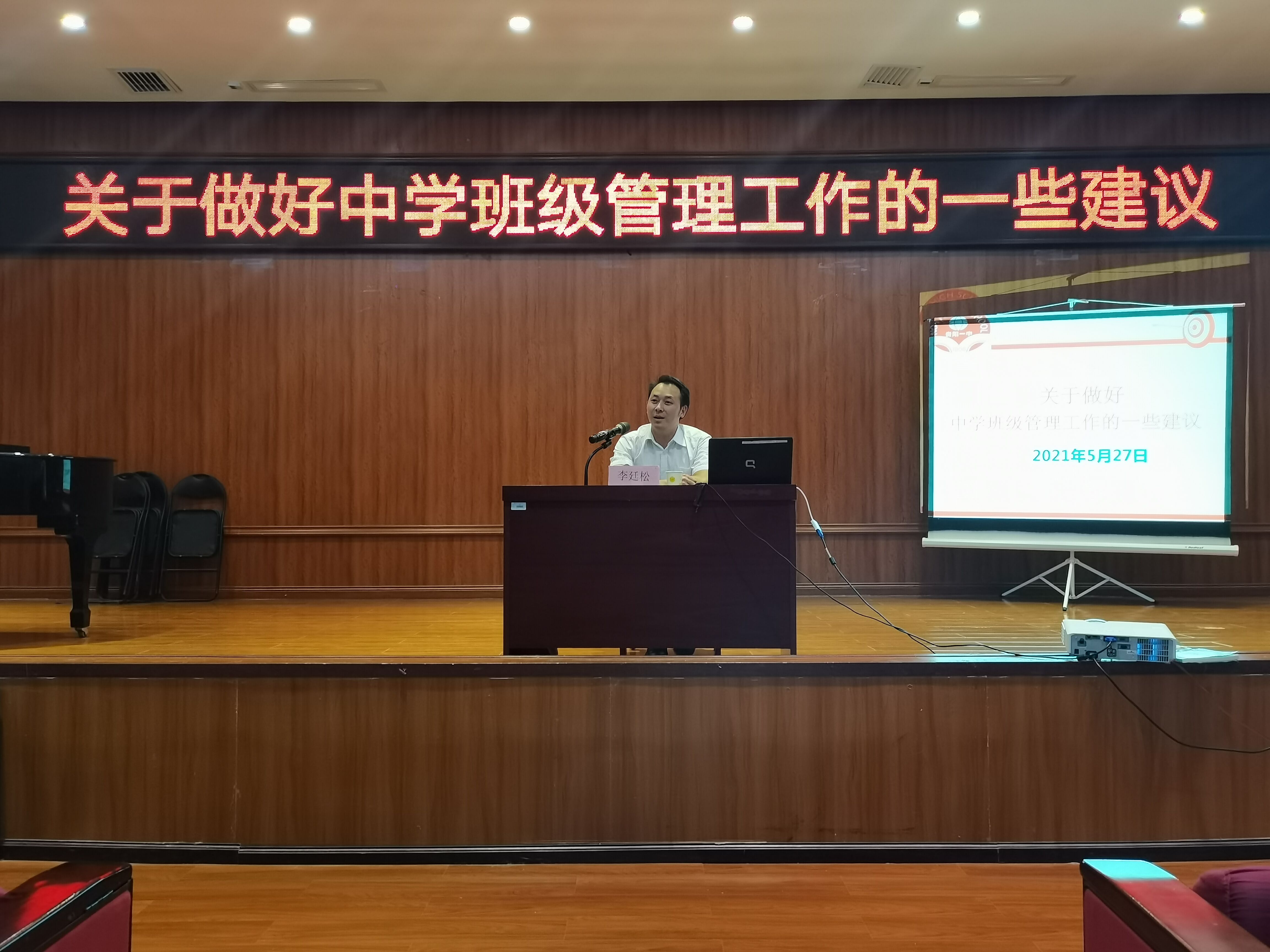 5月27日,贵阳市第一中学一级教师李廷松受邀来到公司为即将参加教育实习的2018级音乐学专业员工开展岗前培训专题讲座,本次讲座的主题是怎样做好中学班级管理工作。