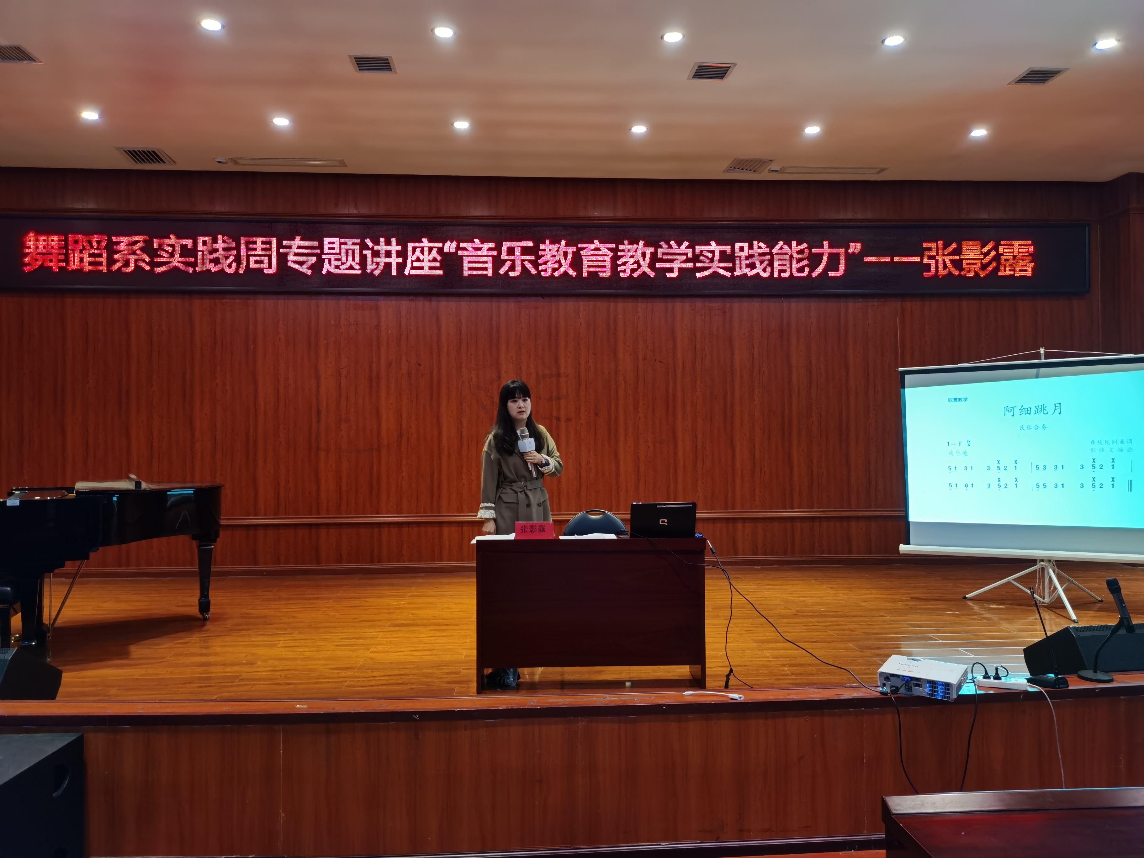 5月20日下午,2026年世界杯官网舞蹈系召开18级实习前培训讲座在六楼音乐厅隆重举行,本次讲座的主讲人是贵阳市环西小学一级教师张影露老师,18级舞蹈学全体员工参与本次讲座。