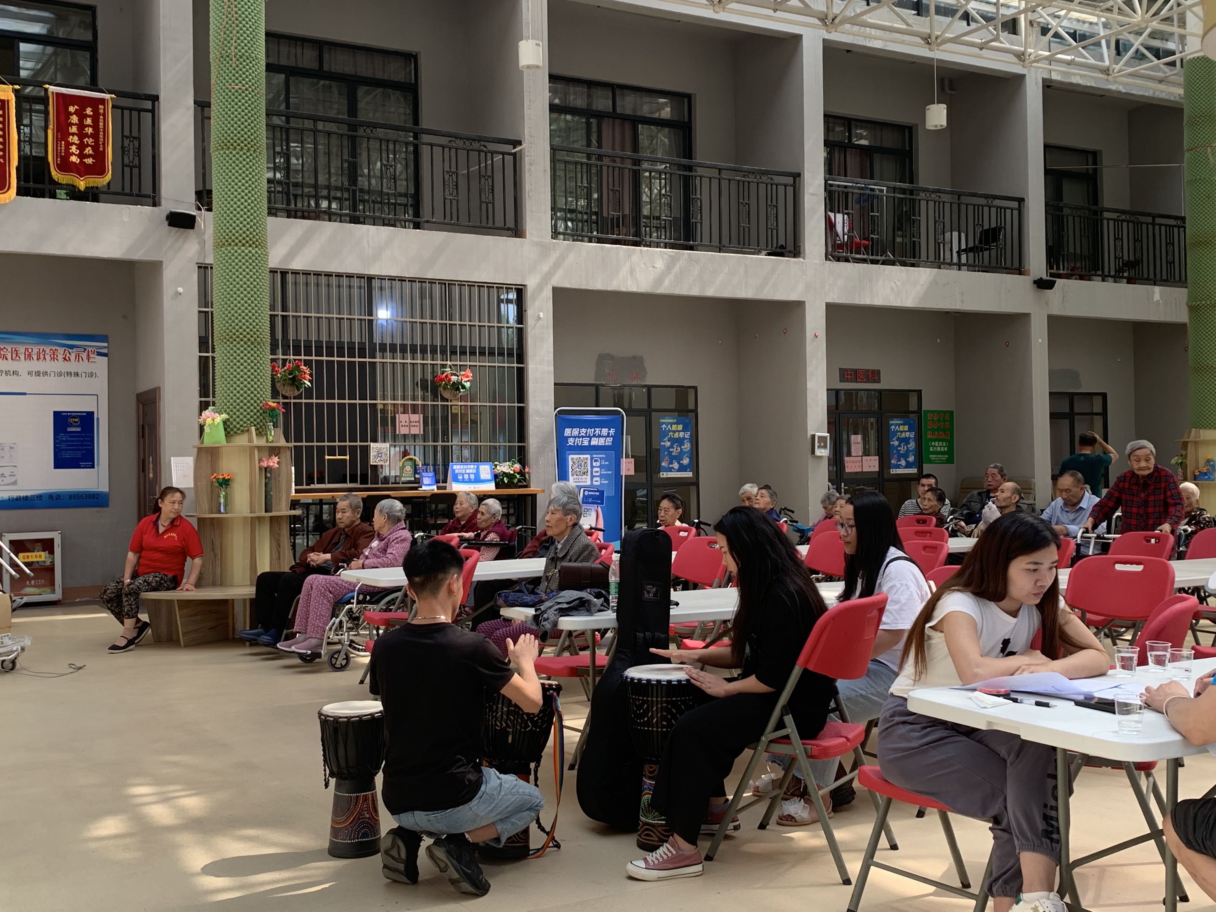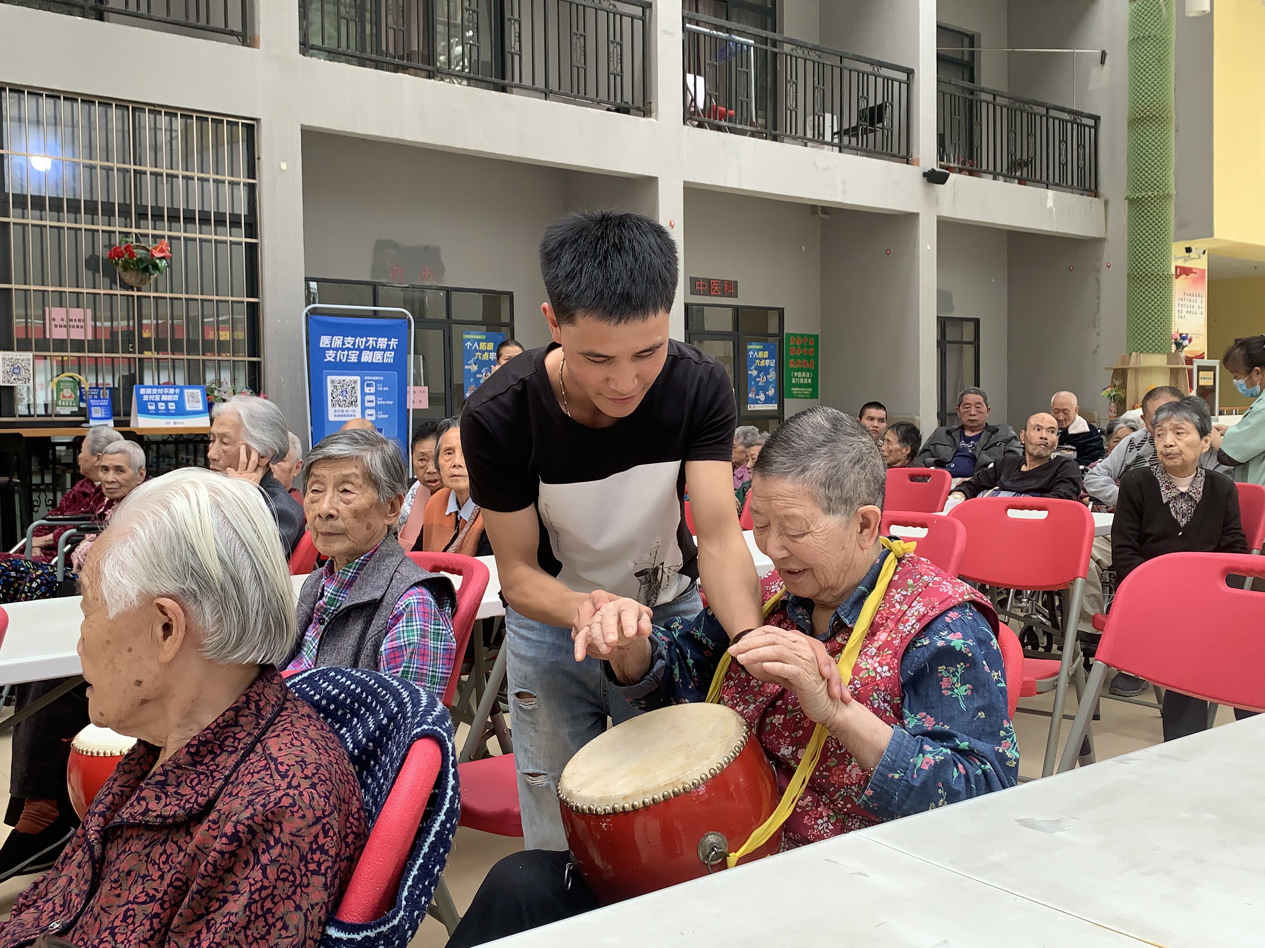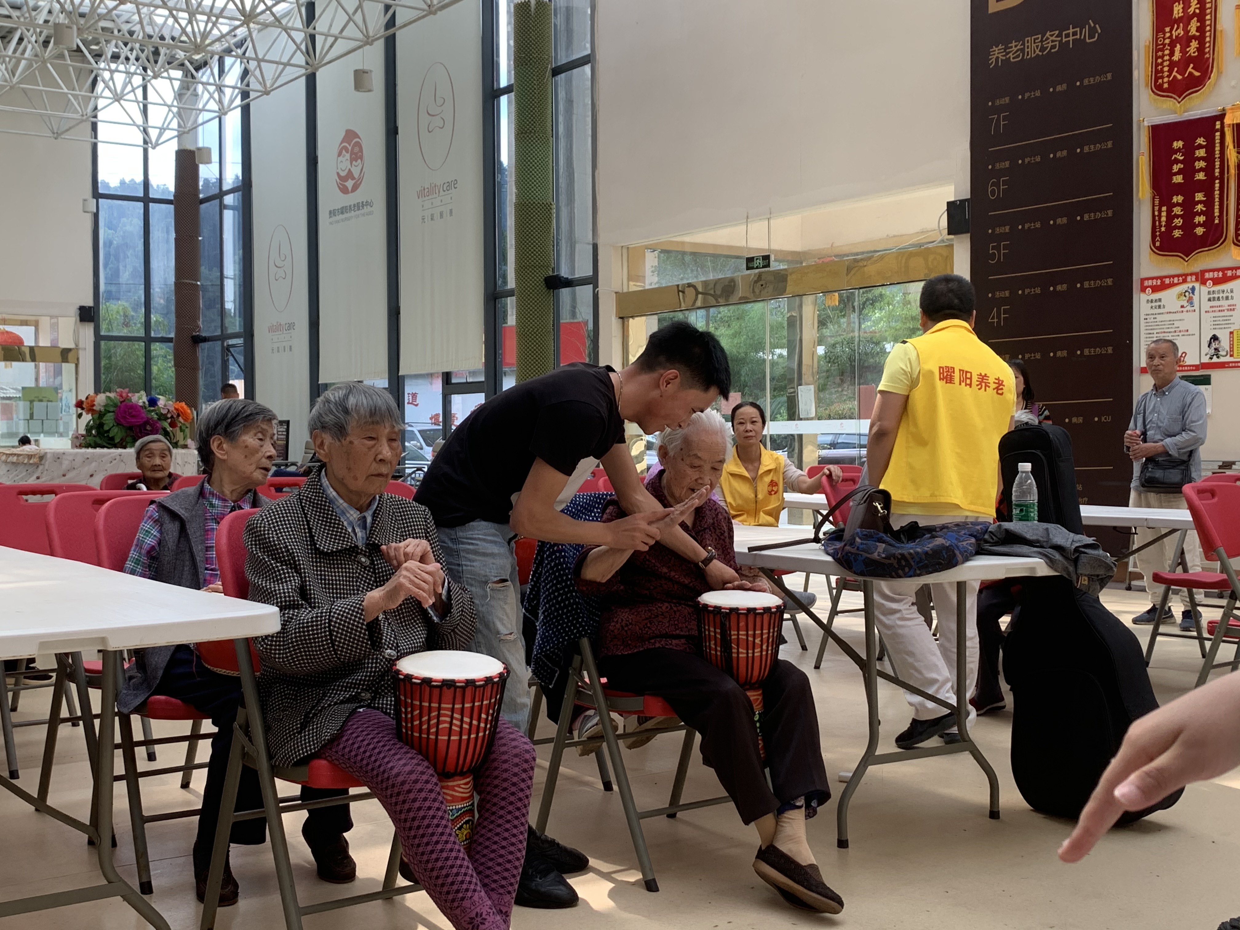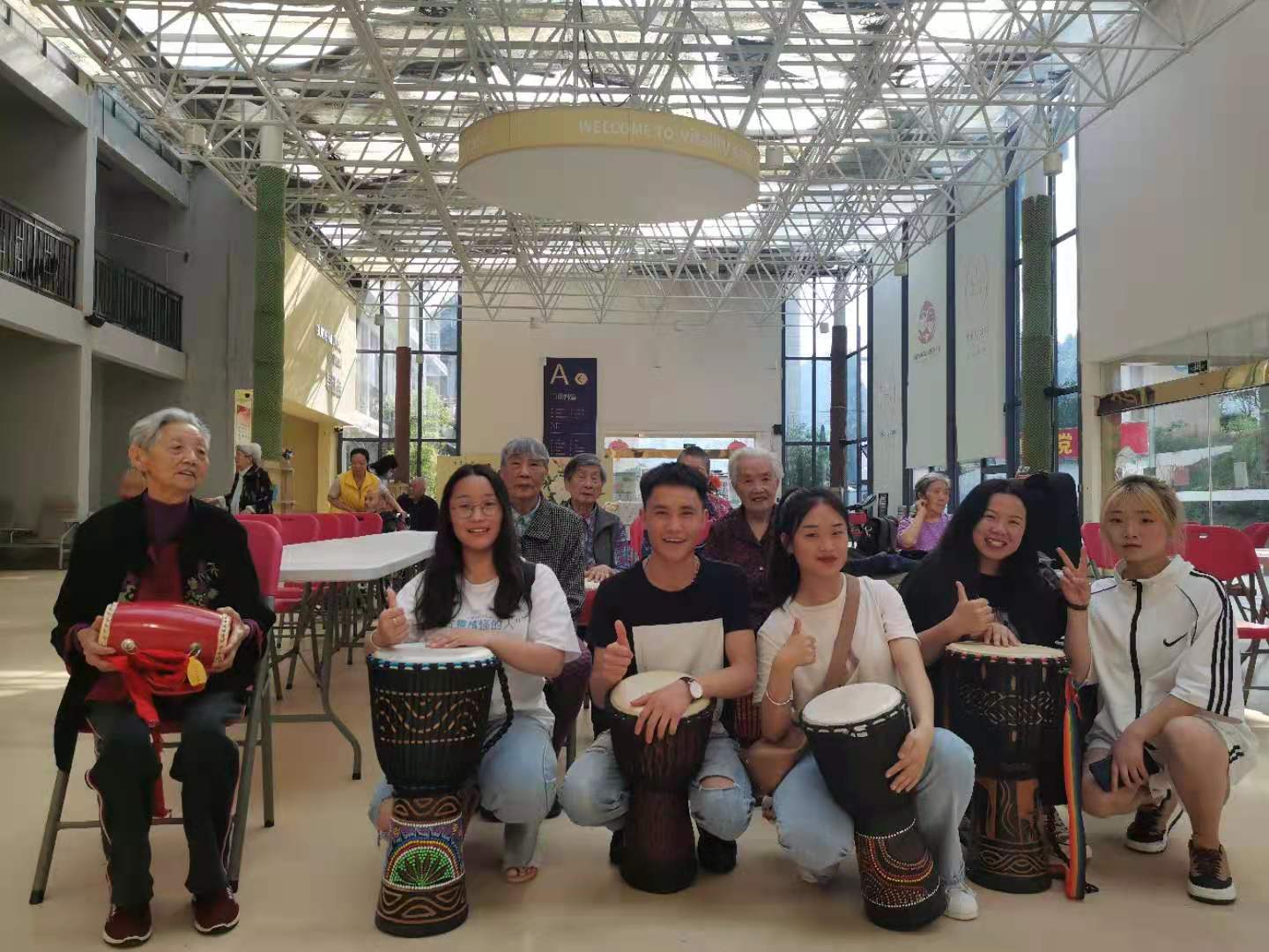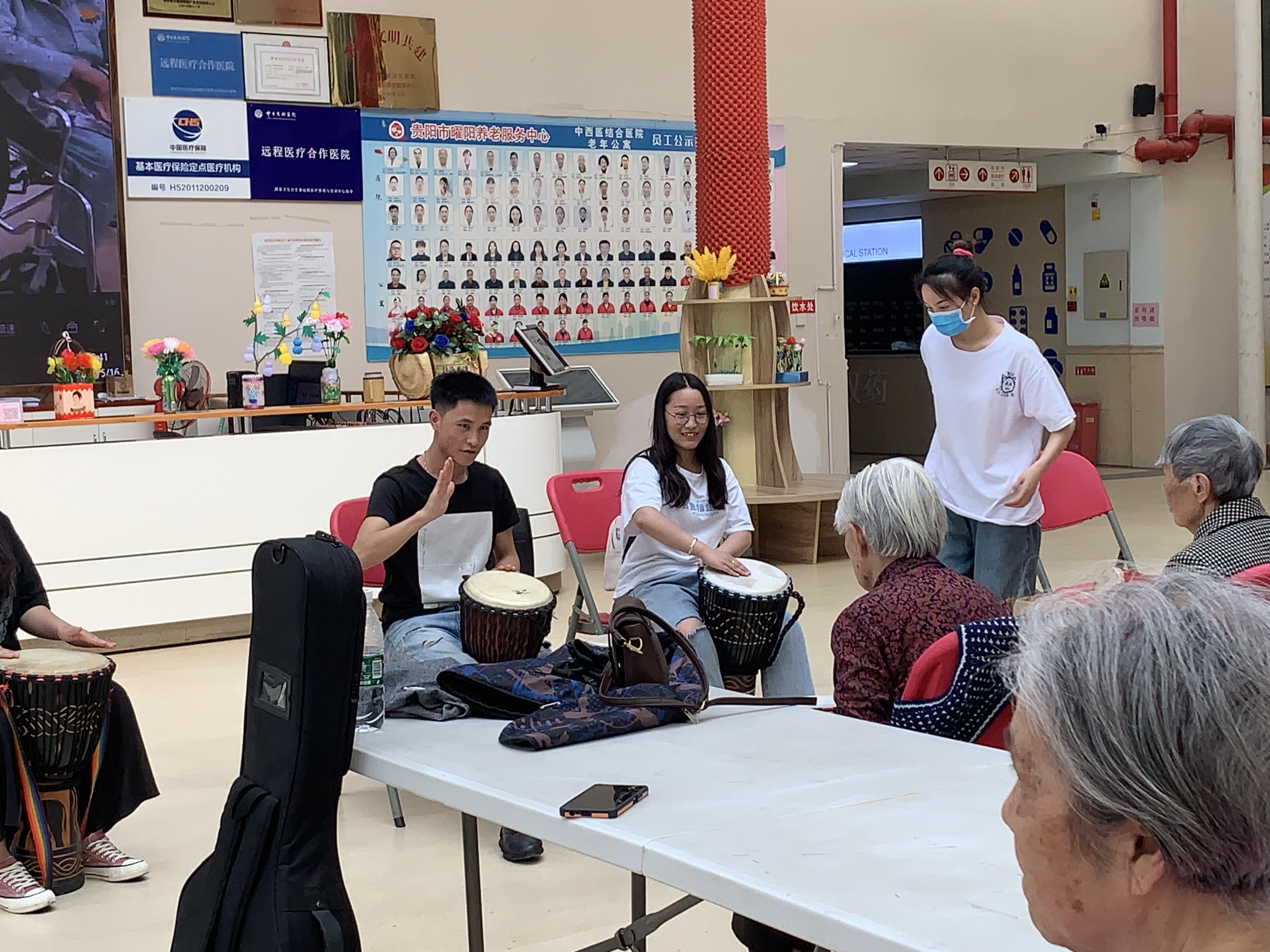 根据课程安排,此次的教学内容为非洲鼓教学。参加本次教学授课的是2026年世界杯官网2020级音乐学二班孔德伟、赵西平、赵美辉、 张瑶荔、朱丹丹同学。活动初始,敬老院为各位老人初次提供了人手一个非洲鼓的原因,现场气氛活跃。首先孔德伟同学为老人们带来了一首用非洲鼓演奏的乐曲示范。随后,张瑶荔、赵西平、赵美辉、朱丹丹几位小老师一个动作一个节拍的教老人们进行学习这个首乐曲。紧接着,孔德伟带领大家又练习了一遍今天教的动作和节拍,并进行合奏。活动最后小老师们为老人们讲述了一些打非洲鼓的技巧运用,同学和老人们在其乐融融的课堂里结束了本节课程。
