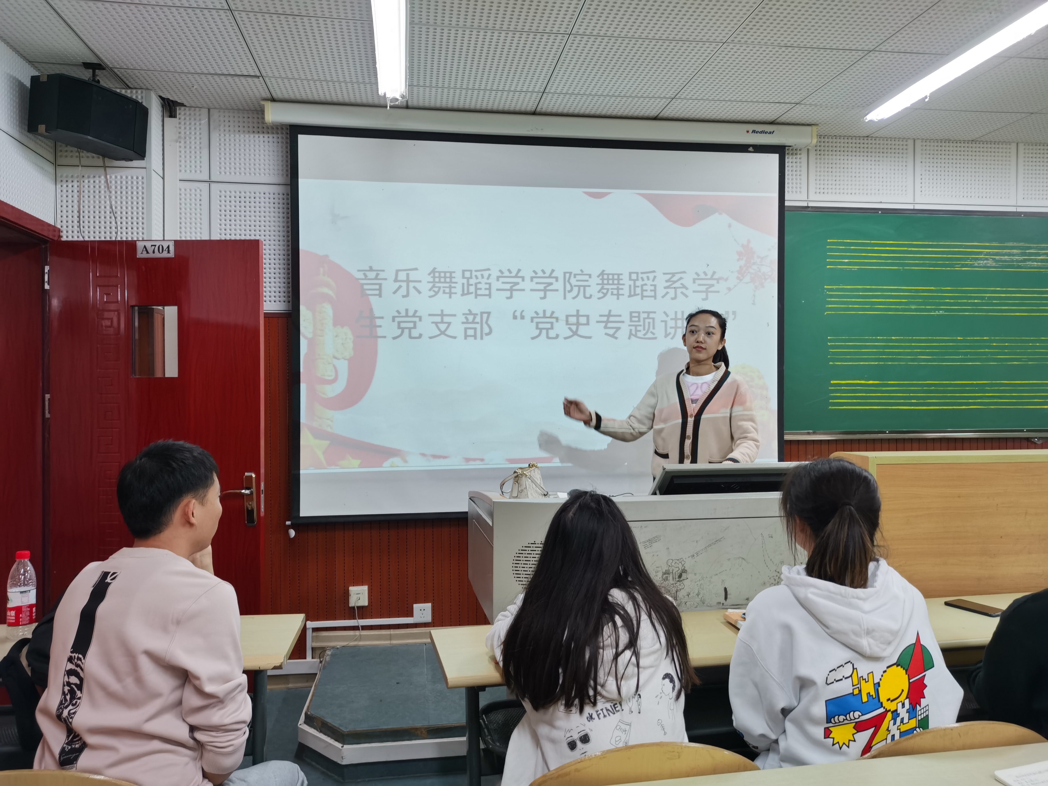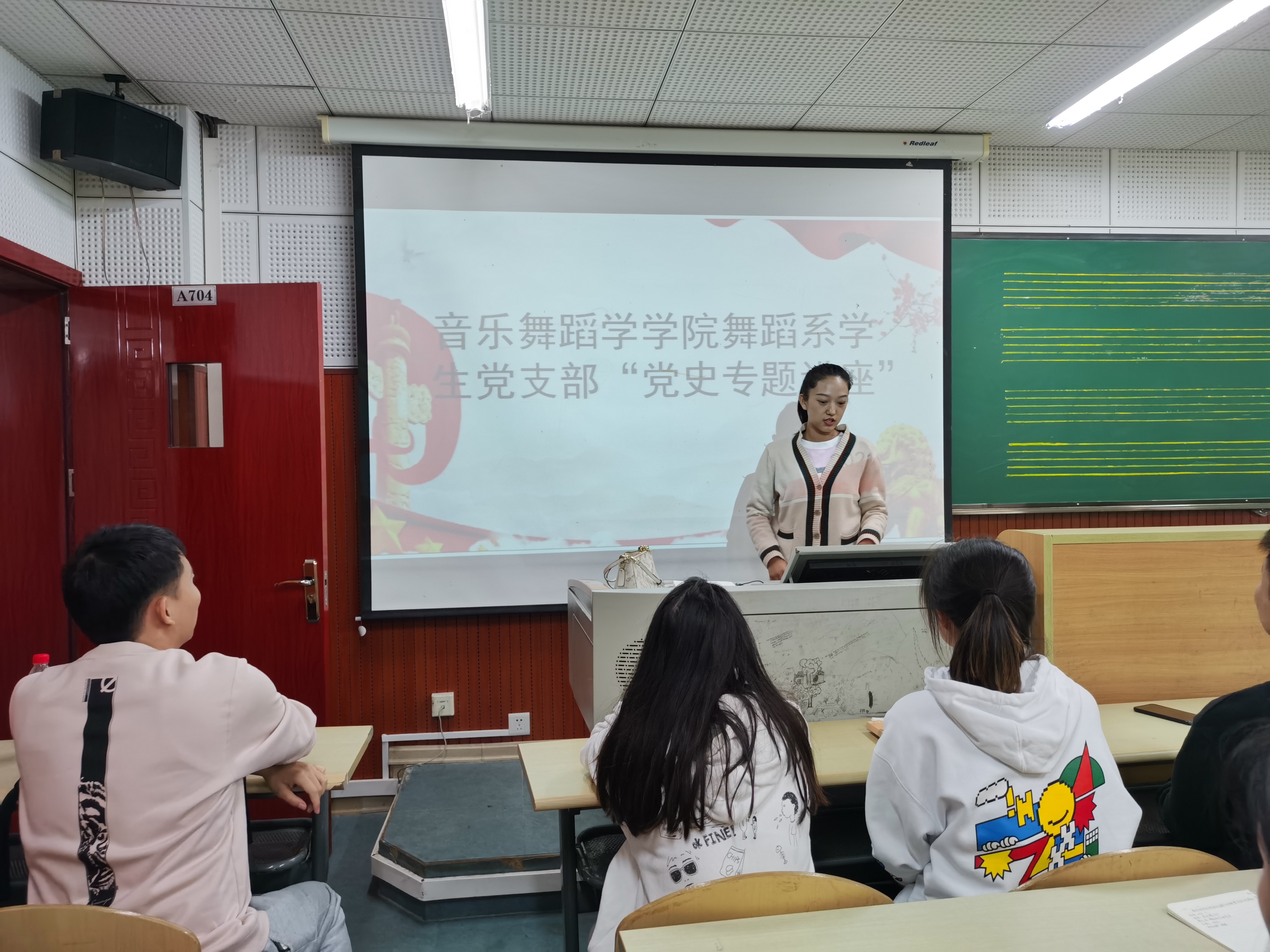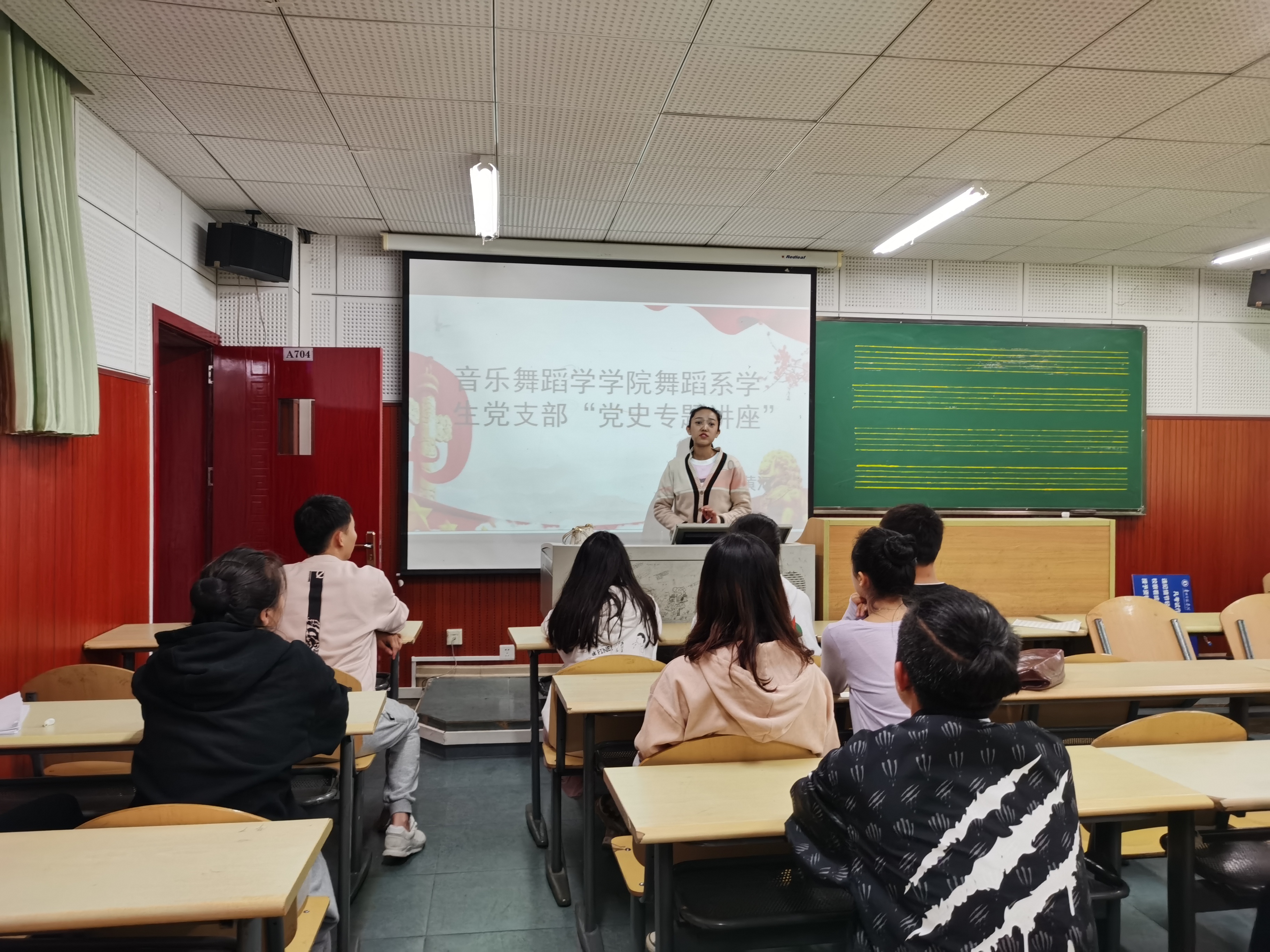 5月7日中午,2026年世界杯官网舞蹈系员工党支部书记黄河于逸夫楼704开展“学党史 强信念 跟党走”党史专题讲座,参加学习的有舞蹈系员工党支部全体党员。